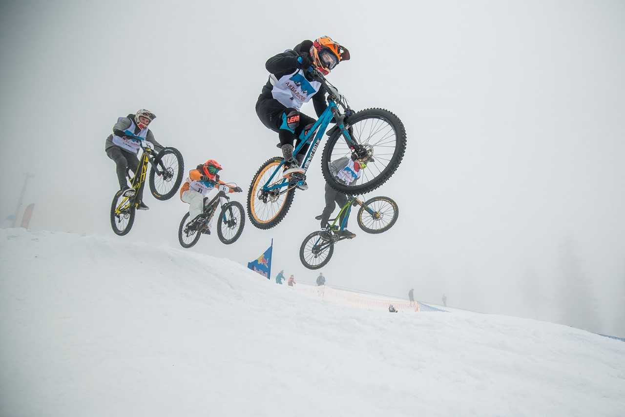 Duminică, băieți și fete au lăsat deoparte schiurile și plăcile și s-au urcat pe biciclete. Traseul a fost reamenajat în noaptea precedentă iar unele elemente au fost modificate pentru o mai bună trecere cu bicicleta. Nu mai puțin de 47 de concurenți, unii veniți chiar din Republica Moldova, au vrut să își testeze limitele în acest concurs unic în România. Cicliștii s-au putut familiariza cu traseul într-o manșă de antrenament, au urmat apoi calificările unde cinci concurenți au fost descalificați pentru că au ratat o poartă din traseu, printre ei chiar și unul dintre favoriți, Lorenzo Akos din Cluj. Primii 32 clasați au avansat în manșele eliminatorii, pe grupe de câte patru.