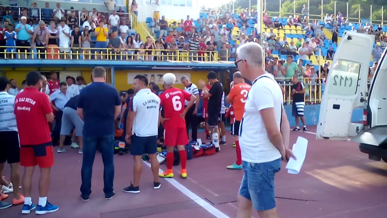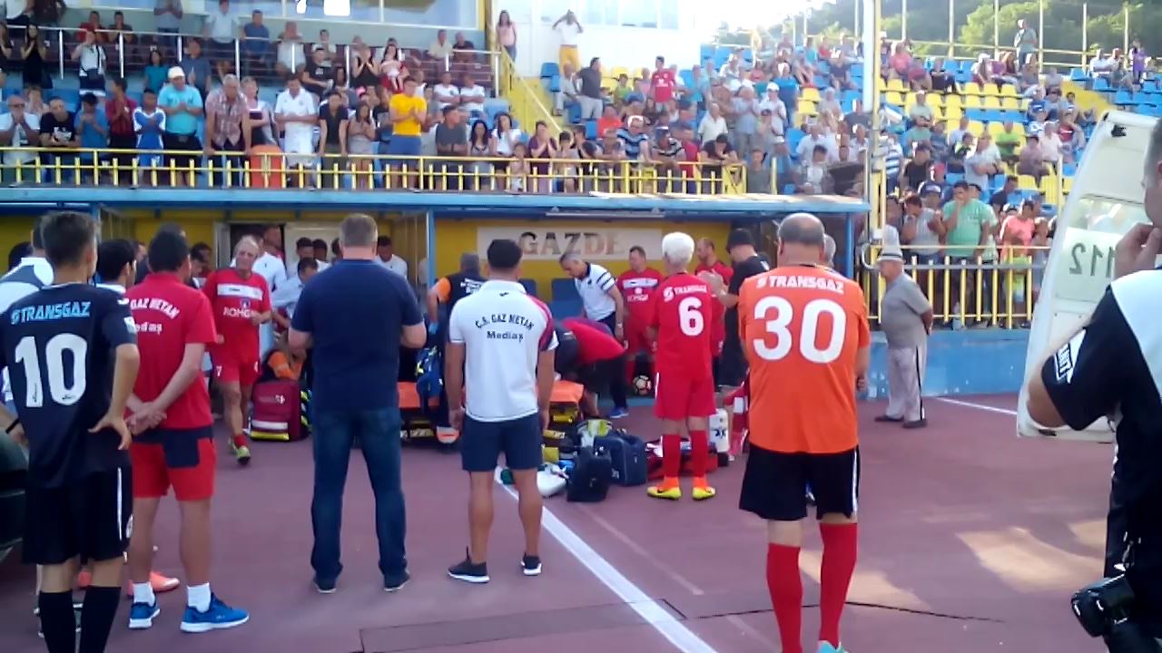 Momente dramatice, duminică seara, la prezentarea lotului formației Gaz Metan Mediaș. Organizatorul de competiții Ioan Aloman, care făcea parte din echipa de Old Boys a clubului, a făcut un infarct și s-a prăbușit pe pista stadionului. Echipa de Old Boys urma să dispute o partidă cu una dintre echipele de juniori ale clubului Gaz Metan, iar la finalul încălzirii înaintea startului partidei, lui Ioan Aloman i s-a făcut rău și a căzut pe pistă. Echipajul medical de pe ambulanța prezentă la stadion a început manevrele de resuscitare, iar la scurt timp au ajuns alte două autospeciale ale Serviciului de Ambulanță Mediaș. După 20 de minute de resuscitare, Ioan Aloman a fost transportat în stare critică la spitalul din Mediaș, iar duminică seara a fost preluat de un elicopter SMURD și transportat la Târgu Mureș. Ioan Aloman a încetat din viață la spitalul din Târgu Mureș. În ciuda eforturilor depuse de medici, Aloman nu a mai putut fi salvat. „Am fost solicitați pentru un pacient în vârstă de aproximativ 60 de ani, care a făcut un stop cardio-respirator. A fost resuscitat timp de 20 de minute, după care a avut funcții vitale, puls, tensiune, ritm pe EKG și a fost transportat la Spitalul Municipal Mediaș pentru investigații de specialitate. Se suspicionează un infarct miocardic acut cu tulburare de ritm cardiac. S-a luat legătura cu Clinica de Chirurgie Cardiovasculară din Târgu Mureș, am primit transferul lor pentru transferul pacientului și va pleca cu elicopterul”, a spus medicul Laura Păcurar.