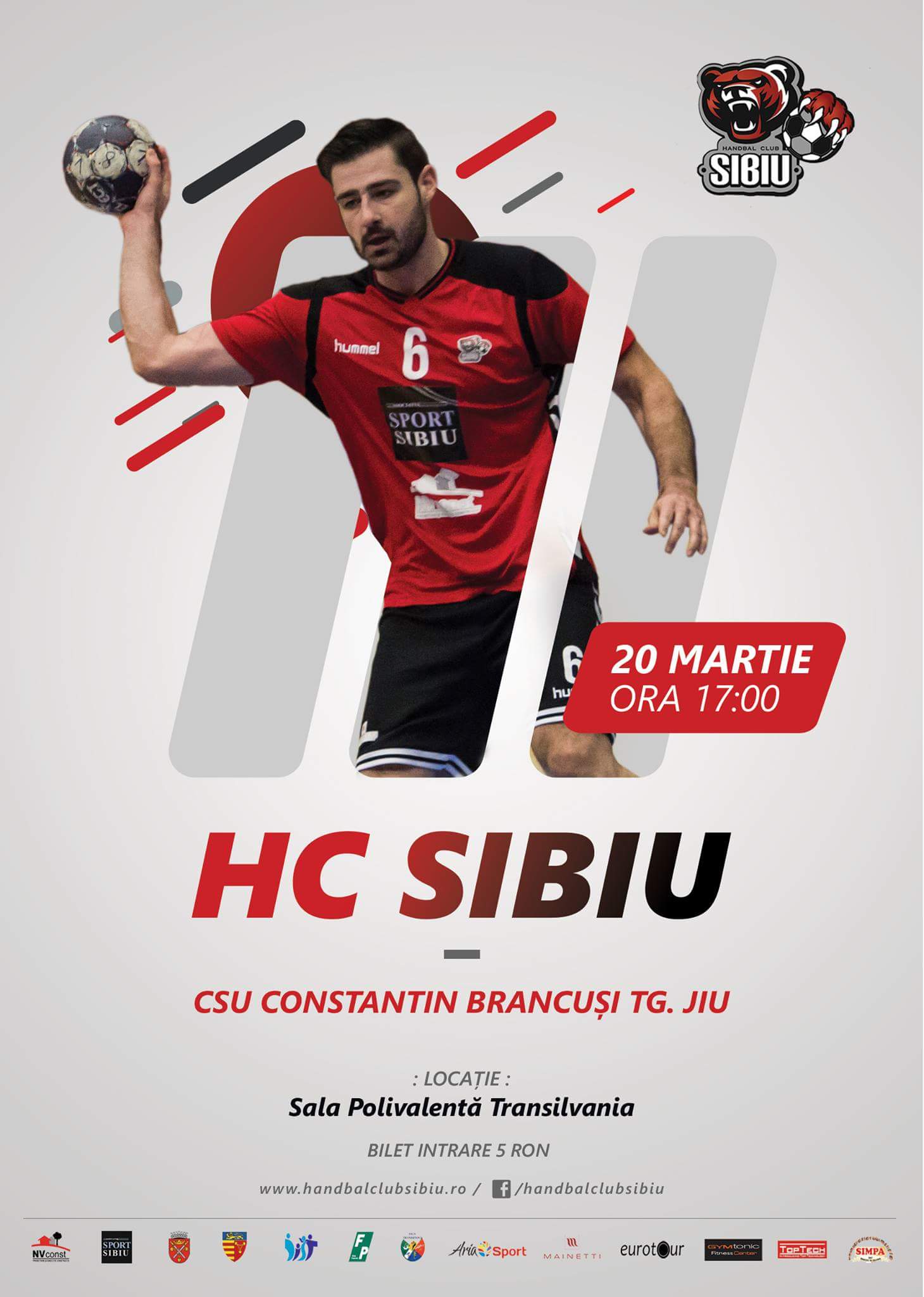 17142117_10154520823498667_1779659549_oHandbaliştii sibieni revin pe teren propriu pentru un meci în Divizia A. În 20 martie, de la ora 17,00, Handbal Club Sibiu primeşte replica echipei CSU Constantin Brâncuşi Târgu Jiu. Partida din Sala Transilvania este una importantă pentru gazde, care au nevoie de victorii şi de puncte în jocurile de acasă. Dueluri unde roş-negri au evoluat foarte bine încă de la înfiinţare. De partea cealaltă, gorjenii au un start de retur excelent, cu un egal la Oradea şi o victorie în faţa Centrului Naţional de Excelenţă din Sighişoara, şi doresc să continue această formă bună. În campionat, „urşii din Transilvania” se află pe locul al zecelea, cu 2 meciuri câştigate, un egal şi 9 eşecuri. Adversarii lor se află pe poziţia a şaptea, cu 5 partide câştigate, un egal şi 7 eşecuri. „Pe noi ne interesează foarte mult să câştigăm fiecare meci”, a declarat antrenorul Matei Damian.