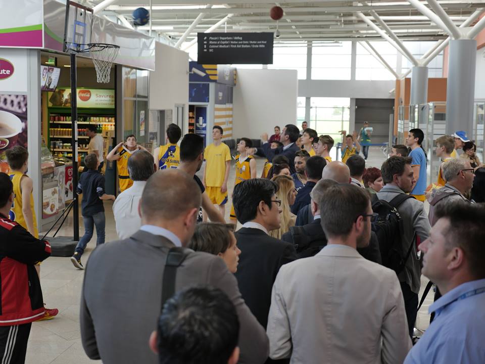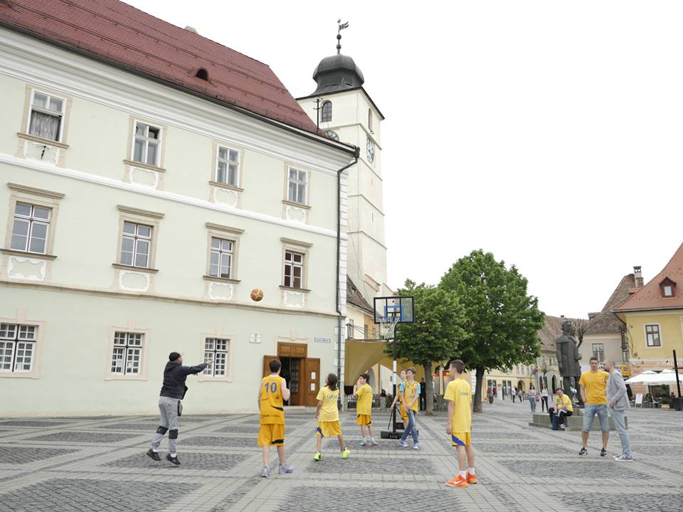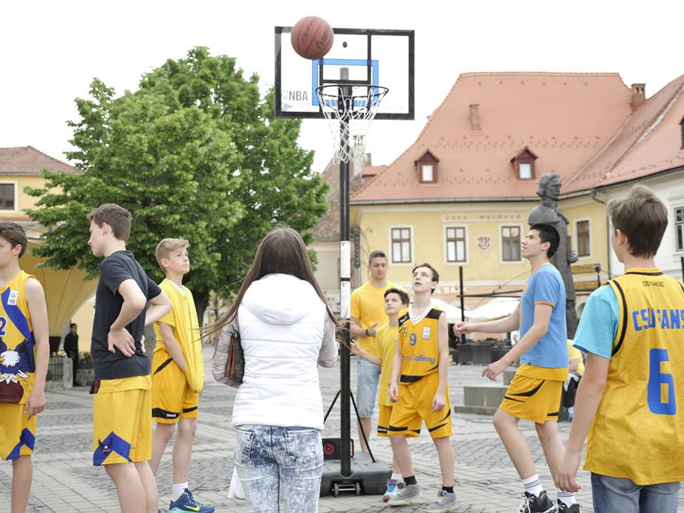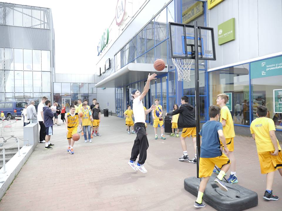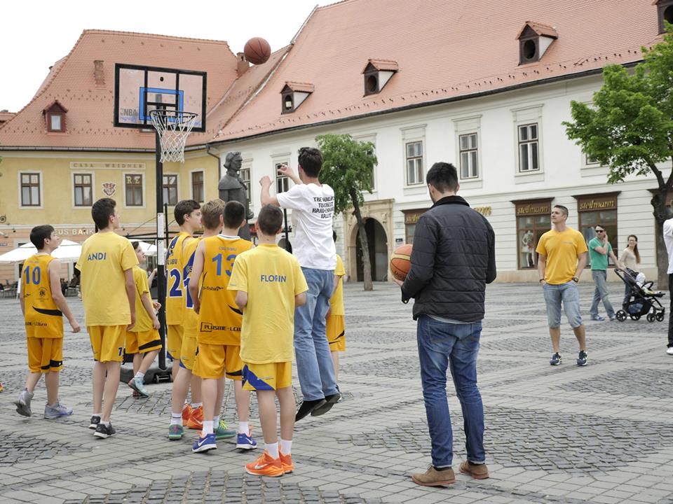 Promovarea baschetuluiCopii, adulţi şi oameni în vârstă, toţi au fost cuprinşi pentru trei ore de „febra baschetului”. Asta datorită lotului de juniori U13 ai CSU Sibiu, jucători care au promovat baschetul prin trei flashmob-uri succesive, în trei spaţii neconvenţionale din oraşul nostru : Aeroportul Internaţional, Piaţa Mare şi Shopping City Sibiu. Locaţii care s-au transformat în mici terenuri de baschet, iar trecătorii au fost încurajaţi să arunce la coş şi să marcheze cât mai multe puncte. Ceea ce unii dintre ei au şi făcut. Au luat mingea, şi nu s-au oprit până nu au reuşit să înscrie. Alături de micuţii baschetbalişti, s-au alăturat iniţiativei de ieri, Octavian Popa Calotă, Vlad Tincu, şi noul antrenor al lui CSU, Dan Fleşeriu. În total, 20 de baschetbalişti ce au captat atenţia trecătorilor, şi le-au arătat ceea ce are frumos „sportul panoul”. Evenimentul este o continuare a apropierii tot mai mare a CSU Sibiu faţă de fanii proprii. Apropiere şi deschidere care a început din anul 2015, prin diverse acţiuni, promo-uri şi video-uri care să întărească şi mai mult legătura întregii suflări „galben-albastre”, cu echipa mare şi grupele de juniori.