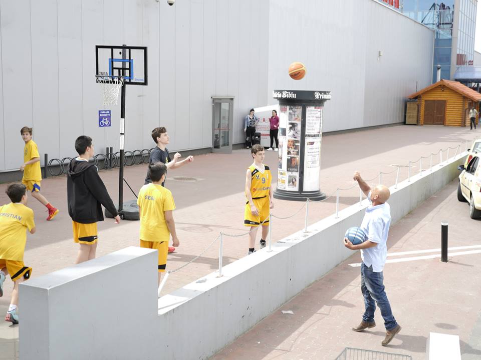 Iniţiativă frumoasă a juniorilor U13 de la CSU Sibiu : trei ore de promovare a „sportului cu panoul”, şi de încurajare a oamenilor simpli să joace baschet