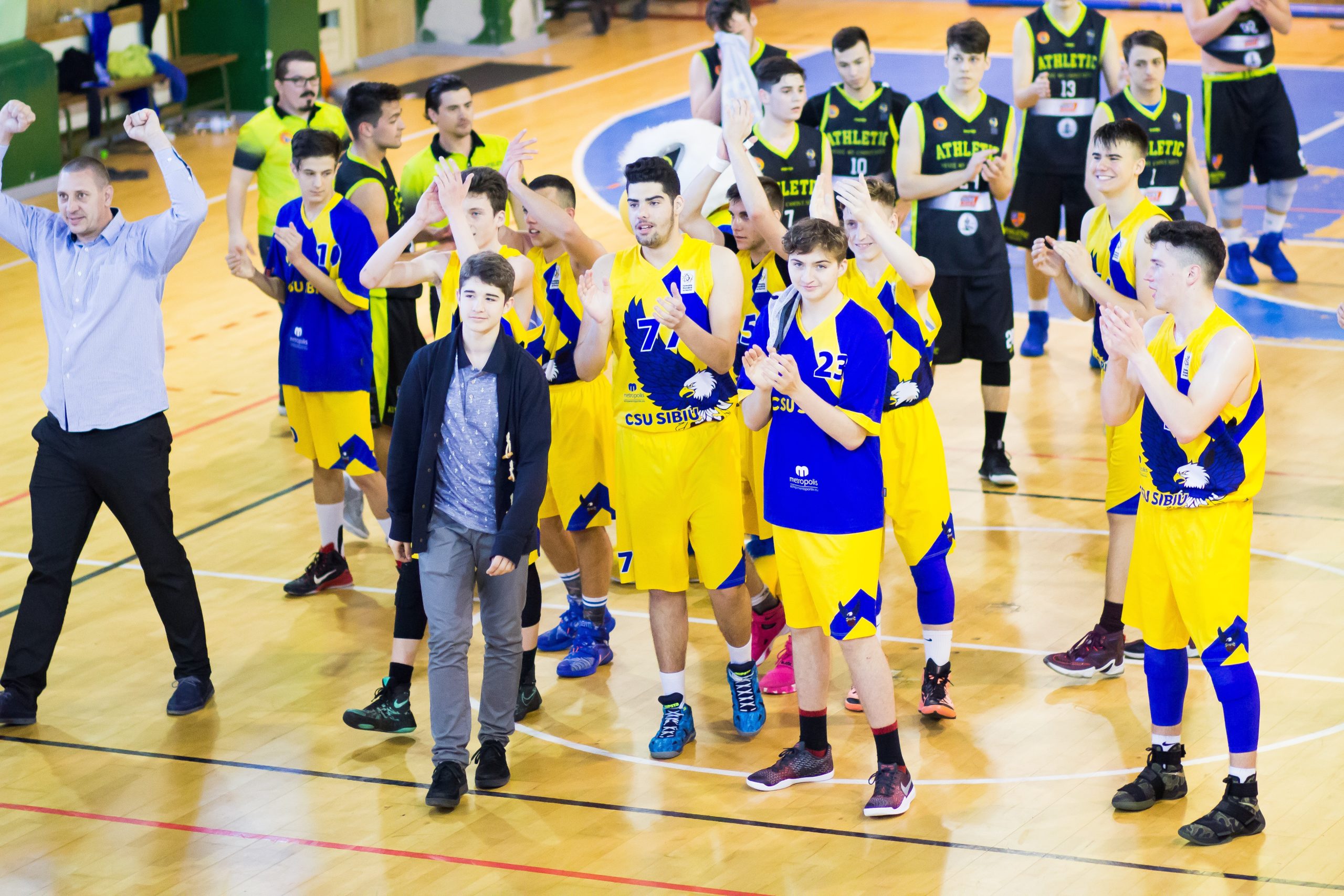 IMG_9327Baschetbaliştii lui CSU Sibiu U18 au încheiat faza semifinală cu o victorie. Cu puţin timp în urmă, „vulturii” s-au impus pe terenul ultimei clasate, CS Sevlar Ploieşti. Ei au câştigat la 10 puncte diferenţă, scor 79-69. Partida a fost la discreţia jucătorilor pregătiţi de Alex Kovacs, care nu au avut nici o problemă în a se impune în deplasare. A fost cel de-al unsprezecelea succes din patrusprezece posibile la Turneul Semifinal. „A fost un meci uşor la discreţia nostră. Toţi jucătorii noştri au jucat şi au înscris”, a declarat Alex Kovacs.