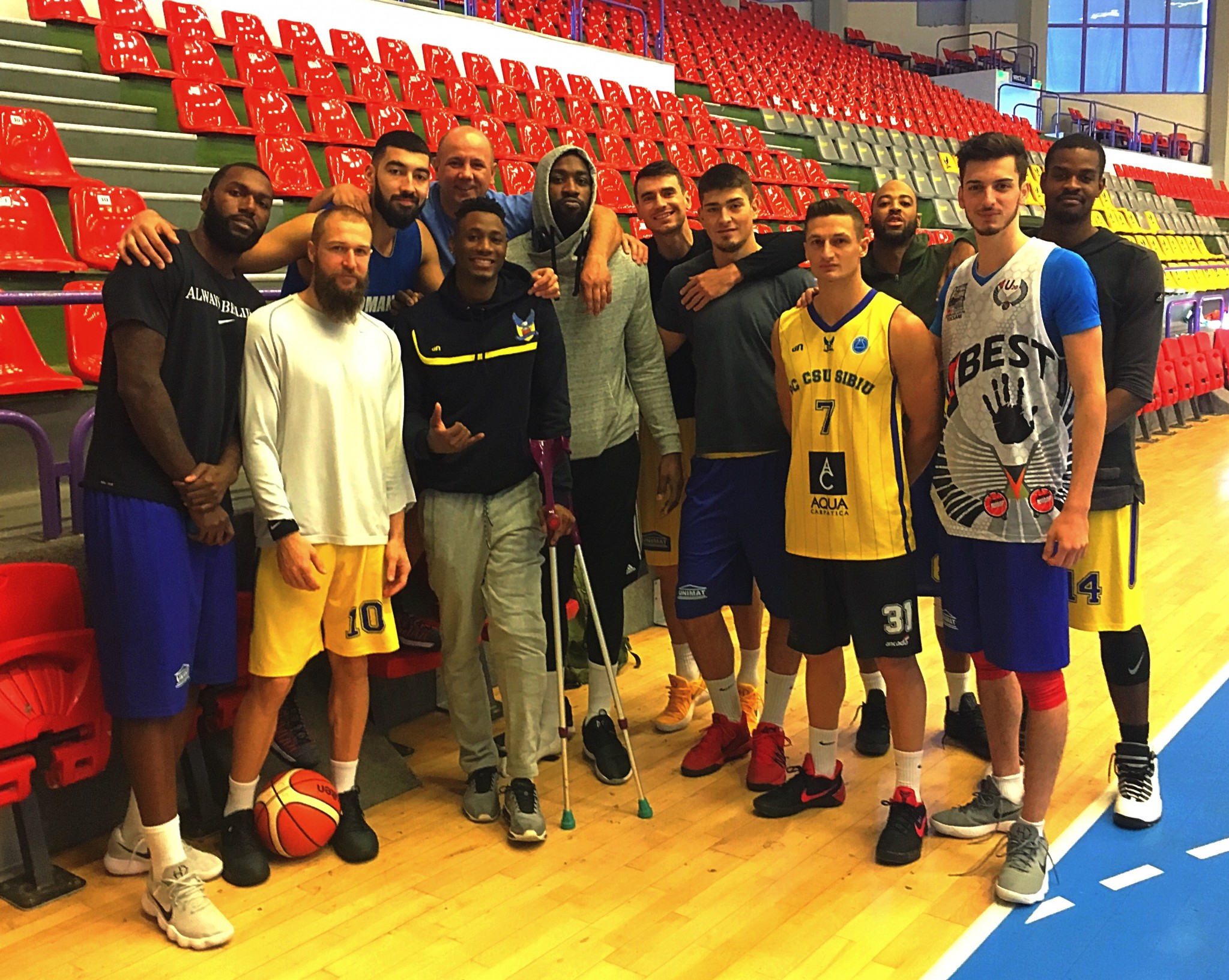 Americanul s-a întors în orașul nostru! Astăzi, el a revenit în Sala Transilvania și și-a revăzut coechipierii. Accidentat la începutul sezonului, el va continua recuperarea alături de staff-ul medical al galben-albaștrilor. Dacă recuperarea va decurge conform planului, Kevin va putea intra pe parchet, în a doua jumătate a lunii aprilie. ”Mă simt mult mai bine și mă bucur că am revenit la echipă. Le mulțumesc tuturor celor care s-au interesat de starea mea, cât timp am fost acasă în recuperare și abia aștept să îi văd în weekend, la Sala Transilvania, la meciul echipei noastre”, a spus Kevin Capers.