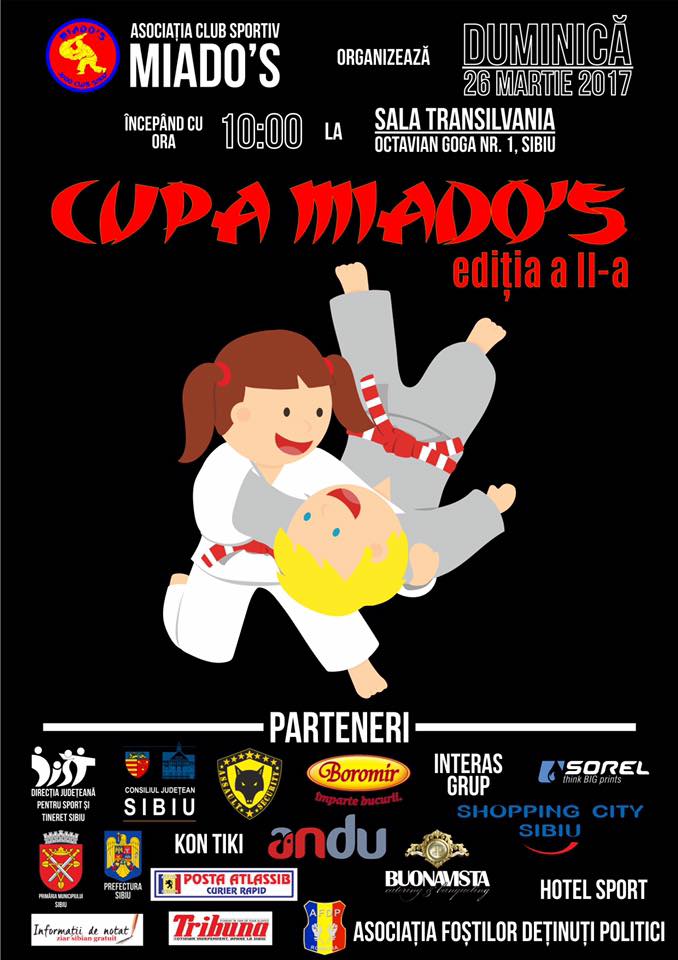 În numai un an de zile, numărul sportivilor participanţi la „Cupa Miado’s” la judo a crescut foarte mult. Din 220 cât a fost în 2016, mâine se anunţă peste 500 de participanţi în Sala Transilvania din Sibiu. Începând cu ora 10,00, în jur de 100 de sibieni vor încerca să obţină cât mai multe medalii în întrecerea unde se pot descoperi noi talente pentru judo-ul românesc. Concursul este pentru sportivi născuţi în anii 2006, 2007, 2008, 2009 şi 2010, atât la feminin, cât şi la masculin. „Cupa Miado’s” este organizată de Asociaţia Club Sportiv Miado’s Sibiu, în parteneriat cu Primăria Municipiului Sibiu, Consiliul Judeţean Sibiu şi Direcţia Judeţeană pentru Tineret şi Sport Sibiu. „Este o cupă de pregătire pentru Campionatele Naţionale. Sportivii acumulează experienţă. Clubul nostru, chiar dacă are numai un an de la înfiinţare este unul cu rezultate foarte bune, nu bune”, a declarat Andreea Ionaş, antrenoarea sportivilor de la Miado.