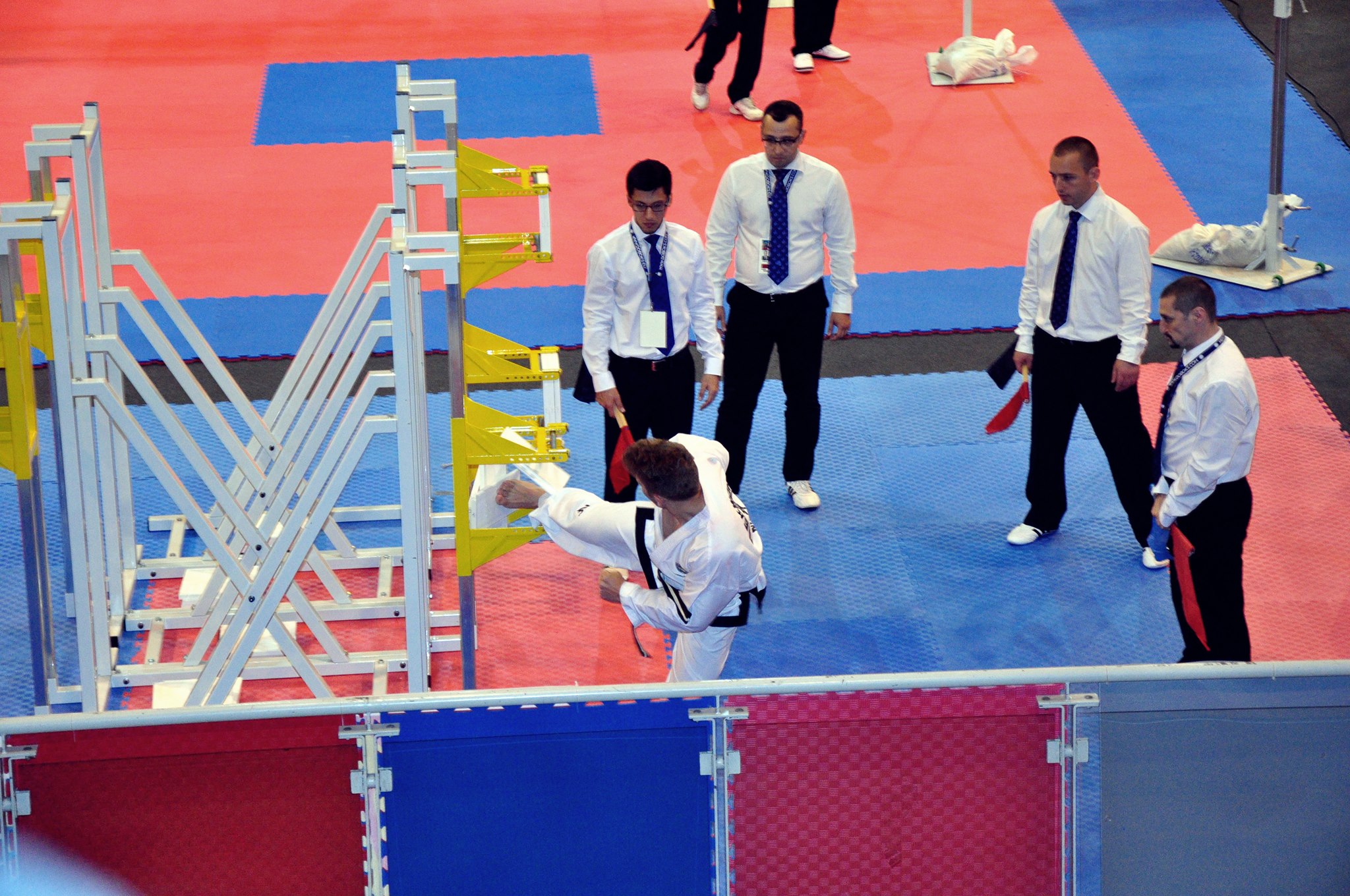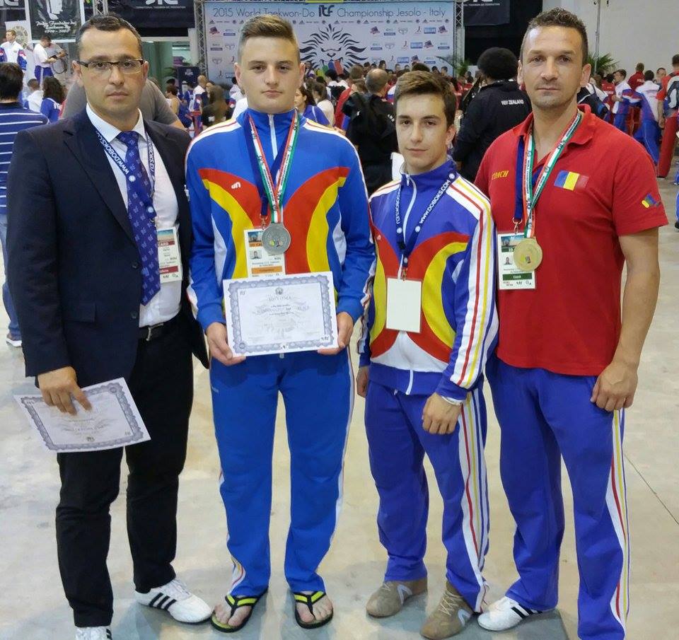Pe lângă Dorian, şi ceilalţi reprezentanţi ai oraşului nostru au strălucit la concursul suprem din taekwon-do. Marius Dancu a avut un turneu de vis, la numai 15 ani. Sportivul din Sibiu a obţinut medalia de argint la echipe şi medalia de bronz la luptă. Emanuel Matei a fost al cincilea la tull, din 66 de participanţi. Ambii sunt antrenaţi de către Alin Lăzurcă (foto tricou roşu) şi reprezintă Puma Club Sibiu. Toţi sibienii noştri au participat la categoria juniorilor. De altfel, din lotul tricolor au fost la Jesolo din partea oraşului nostru, antrenorii Alin Lăzurcă şi Florin Bârluţ, sportivii Dorian Neagu, Emanuel Matei şi Marius Dancu, plus arbitrul Ciprian Banea (foto în costum). Performanţe fabuloase ale sportivilor noştri care vorbesc încă o dată despre valoarea taekwondo-ului din Sibiu. Despre munca, perseverenţa şi ambiţia sportivilor şi antrenorilor sibieni. „Emanuel Matei a terminat pe locul 5 la tull din 66 de participanţi. Un rezultat excepţional…şi puţin a lipsit să nu treacă mai departe. Marius Dancu, locul 3 la luptă şi locul 2 la echipe este un rezultat extraordinar la primul mondial. Are doar 15 ani, mai prinde un mondial. Suntem în creştere, şi cred că pe viitor Sibiul va da mulţi campioni mondiali şi europeni. Sunt foarte bucuros. Este încă un vis devenit realitate pentru mine. În continuare voi ţinti mai sus spre locul 1 mondial!”, a declarat antrenorul naţionalei României şi al Puma Sibiu, Alin Lăzurcă.