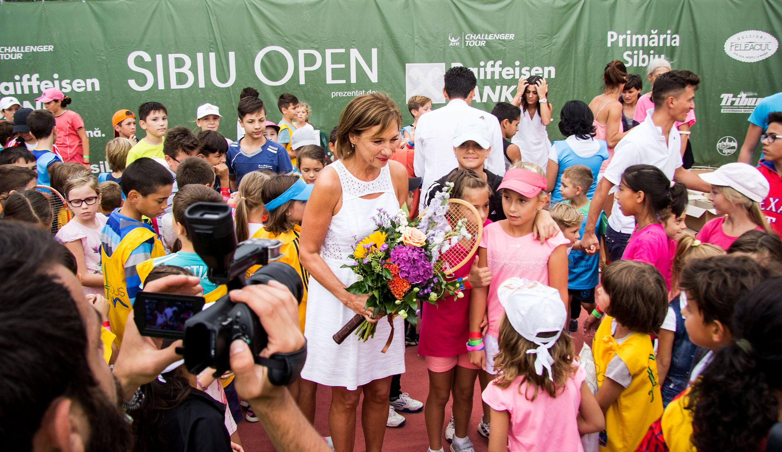 Baza de Tenis Pamira a fost tranformată într-un imens loc de joacă, în ziua de ieri. Peste 300 de copii au luat cu asalt locul unde se dispută cel mai important turneu challenger din sud-estul Europei, Sibiu Open. Ei au jucat baschet, badminton, tenis de masă şi de câmp şi minifotbal. Micuţii au participat la diverse activităţi recreative şi jocuri de ştafetă, în cadrul evenimentului supranumit „Kids Day”. Apoi, la finalul zilei, cei mai buni au fost premiaţi de către Prima Doamnă a României, Carmen Iohannis. „Încurajez copii să înceapă tenisul sau orice alt sport. Sportul este foarte important pentru toată lumea şi ar trebui să se scrie cu litere de tipar şi în inimile noastre pentru că ne aduce bucurie şi ne face să ne simţim mult mai bine”, le-a transmis copiilor, Carmen Iohannis.