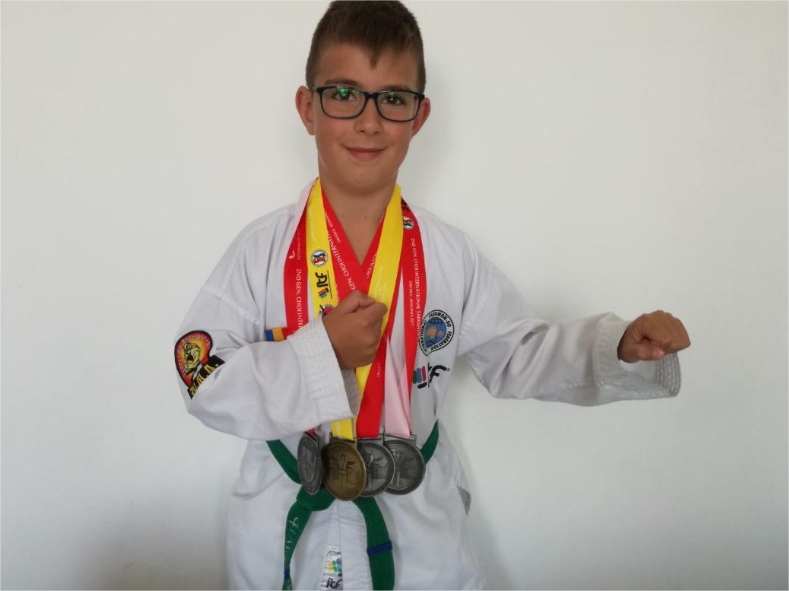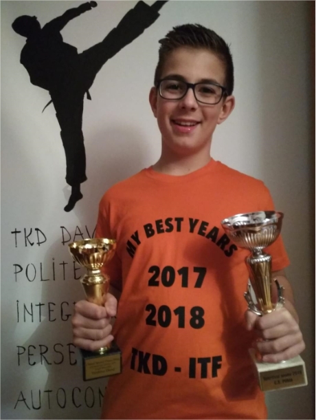 În vară împlinește 11 ani și deja se poate lăuda cu performanțe notabile reușite pe tatamiurile din țară. Practică Taekwon-Do de aproape 6 ani, timp în care a adunat mai bine de 60 de medalii. Le ține în camera lui, să-i amintească zilnic de motivul pentru care luptă și să-l încurajeze să devină cea mai bună versiune a lui. De două ori cel mai bun sportiv al clubului Puma, David Trînbițaș are planuri mari privind viitorul.