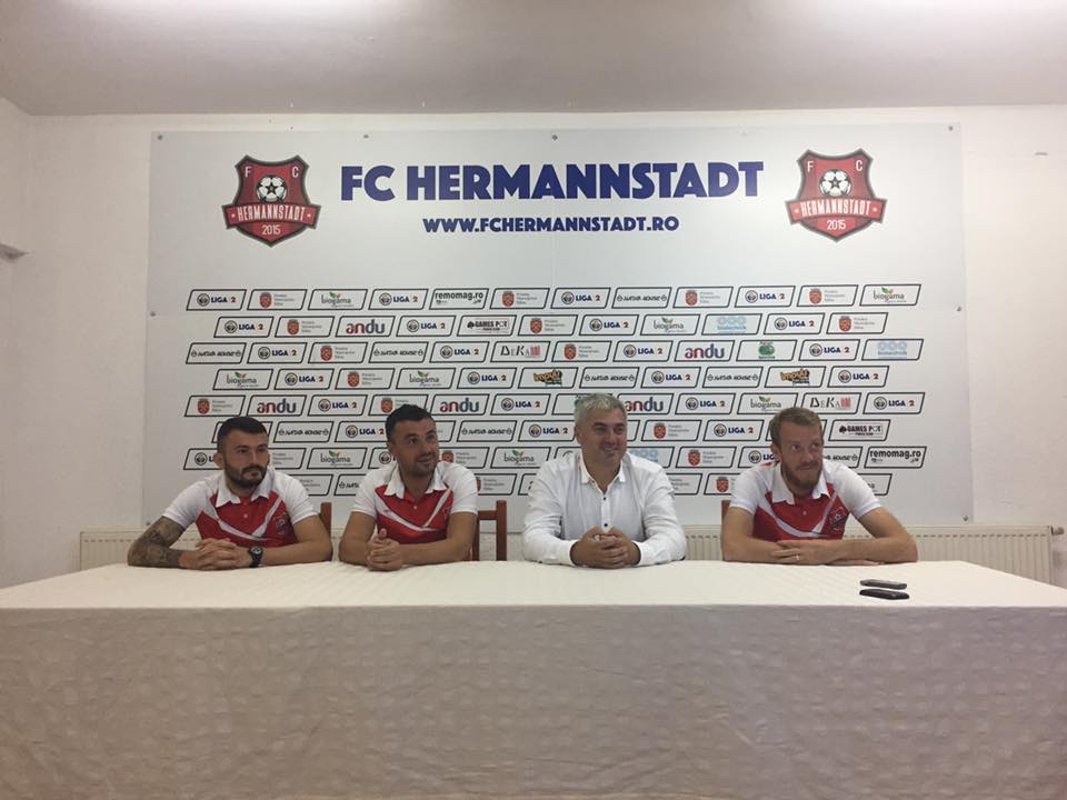 FC Hermannstadt FacebookFC Hermannstadt și-a încheiat campania de achiziții! După ce au anunțat aducerea atacanților Dan Roman și Andrei Herghelegiu, clubul sibian i-a prezentat pe aceștia și în fața presei într-o conferință susținută astăzi la stadionul Municipal. Au fost prezenți cei doi fotbaliști, antrenorul secund Eugen Beza și președintele FCH, Teodor Birț. ”Vreau să le urez bun venit celor doi. Dan Roman este un jucător cu care eu personal am fost coleg. Un jucător de echipă, un caracter frumos. A demonstrat pe unde a fost că este un jucător important. Sunt convins că o să se integreze foarte bine! Cu Andrei Herghelegiu, în ultima parte a carierei mele am fost adversari. Un jucător bun, un jucător polivalent în compartimentul ofensiv.  Un jucător care este la o vârstă propice performanței. L-am adus în ideea de a oferi un plus pe faza ofensivă”, a declarat Eugen Beza, antrenorul secund al FC Hermannstadt.