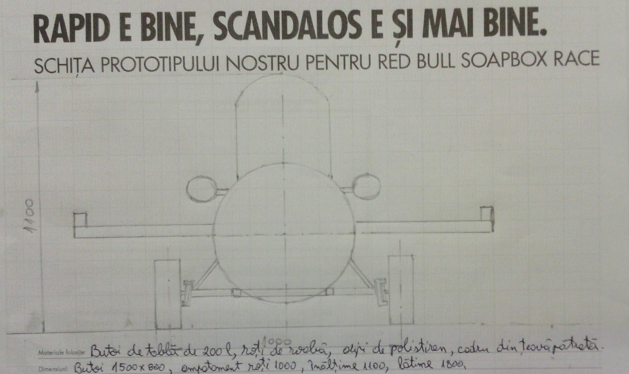 Red Bull Soapbox Race este un bal mascat al curselor auto, spun unii, un Halloween pe roți, conform altora. Organizatorii îl denumesc un Grand Prix unde șoferii amatori se urcă la volanul unor vehicule artizanale, care funcționează pe bază de curaj, gravitație și un pic de Red Bull. De fapt, cele mai importante unelte din cutia lor sunt creativitatea și bucuria competiției. Și bineînțeles, setea de viteză. Acest eveniment unic de racing nemotorizat e o provocare și pentru șoferii experimentați, și pentru amatorii care sunt în stare să deseneze și să construiască niște grozăvenii cu roți, și să concureze contratimp într-o cursă la vale, căci acolo e finișul. Concursul va începe la ora 11,00. Pe pagina redbull.ro/soapbox puteţi vedea toate echipele, iar întrecerea va putea fi urmărită live pe Sport.ro.