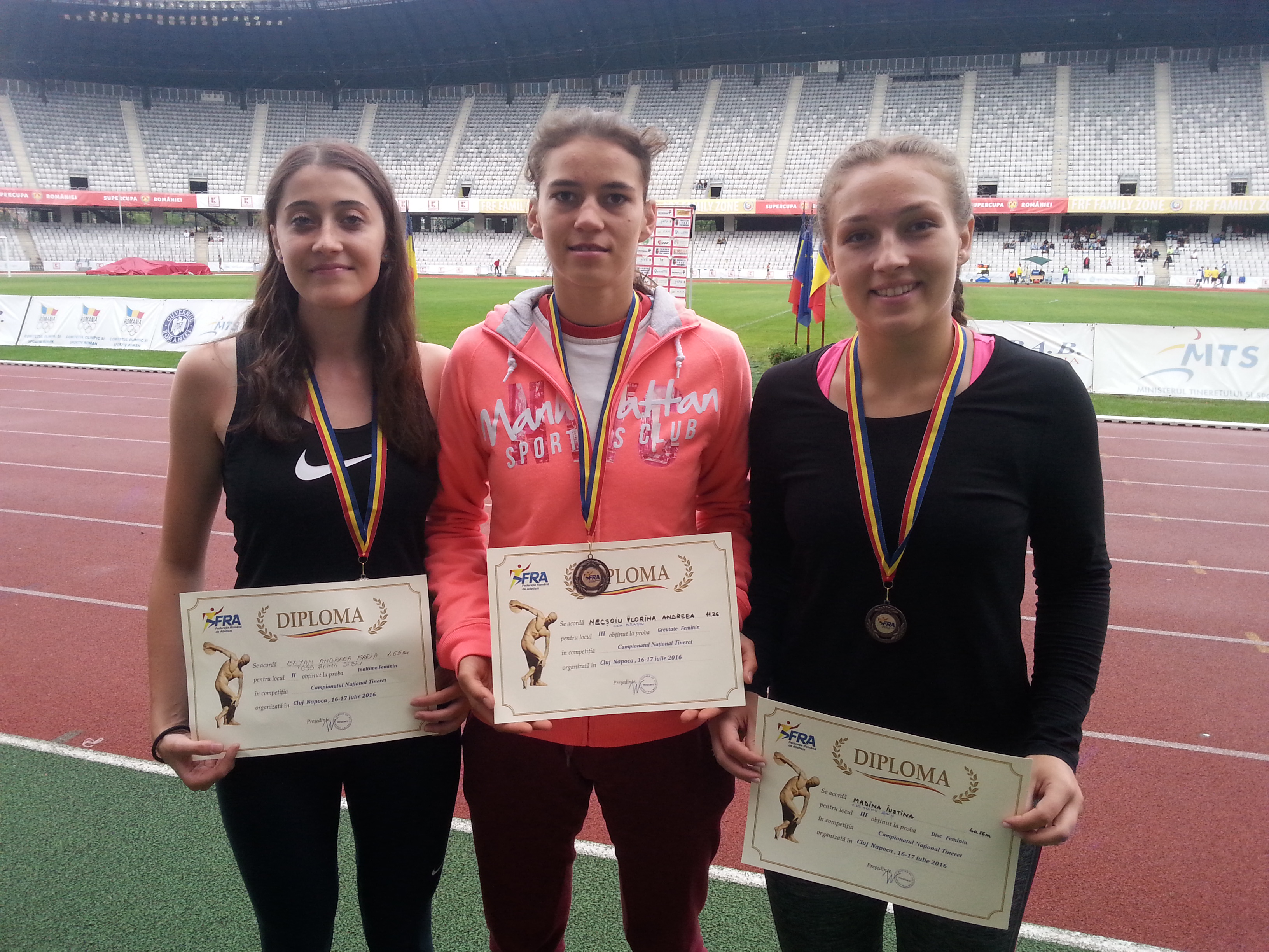 Atleţii sibieni au urcat de 5 ori pe podium la ediţia 2016 a Campionatelor Naţionale de Tineret şi Seniori. Andreea Bejan, Andreea Necşoiu şi Iustina Madina au fost sportivele care au fost printre primele în concurs şi care au fost răsplătite cu medalii. Evenimentul a avut loc pe Cluj Arena, în week-end-ul ce tocmai a trecut. A fost o vreme foarte nefavorabilă atletismului, a plouat în ambele zile şi acest lucru le-a făcut mari probleme concurenţilor.