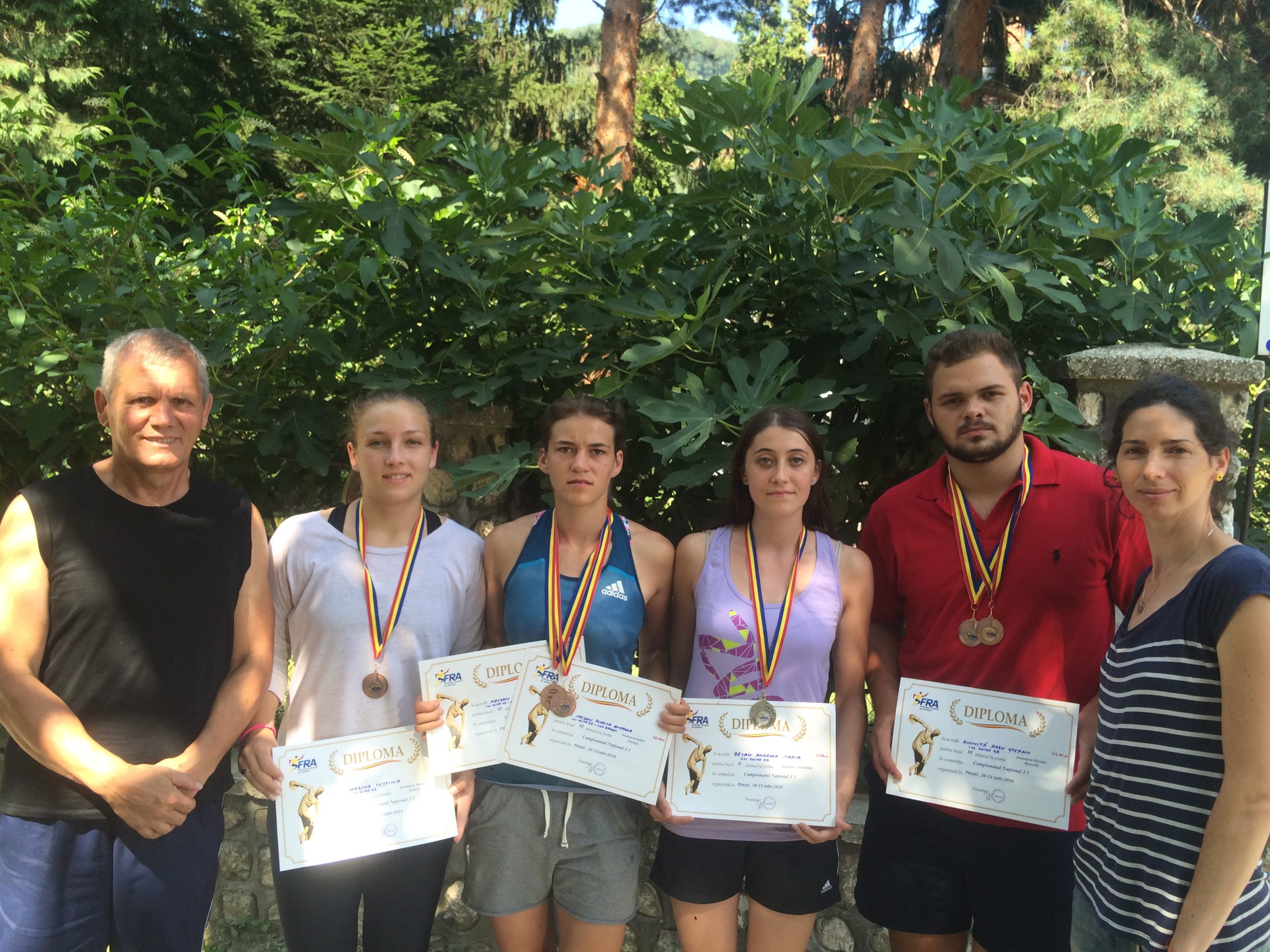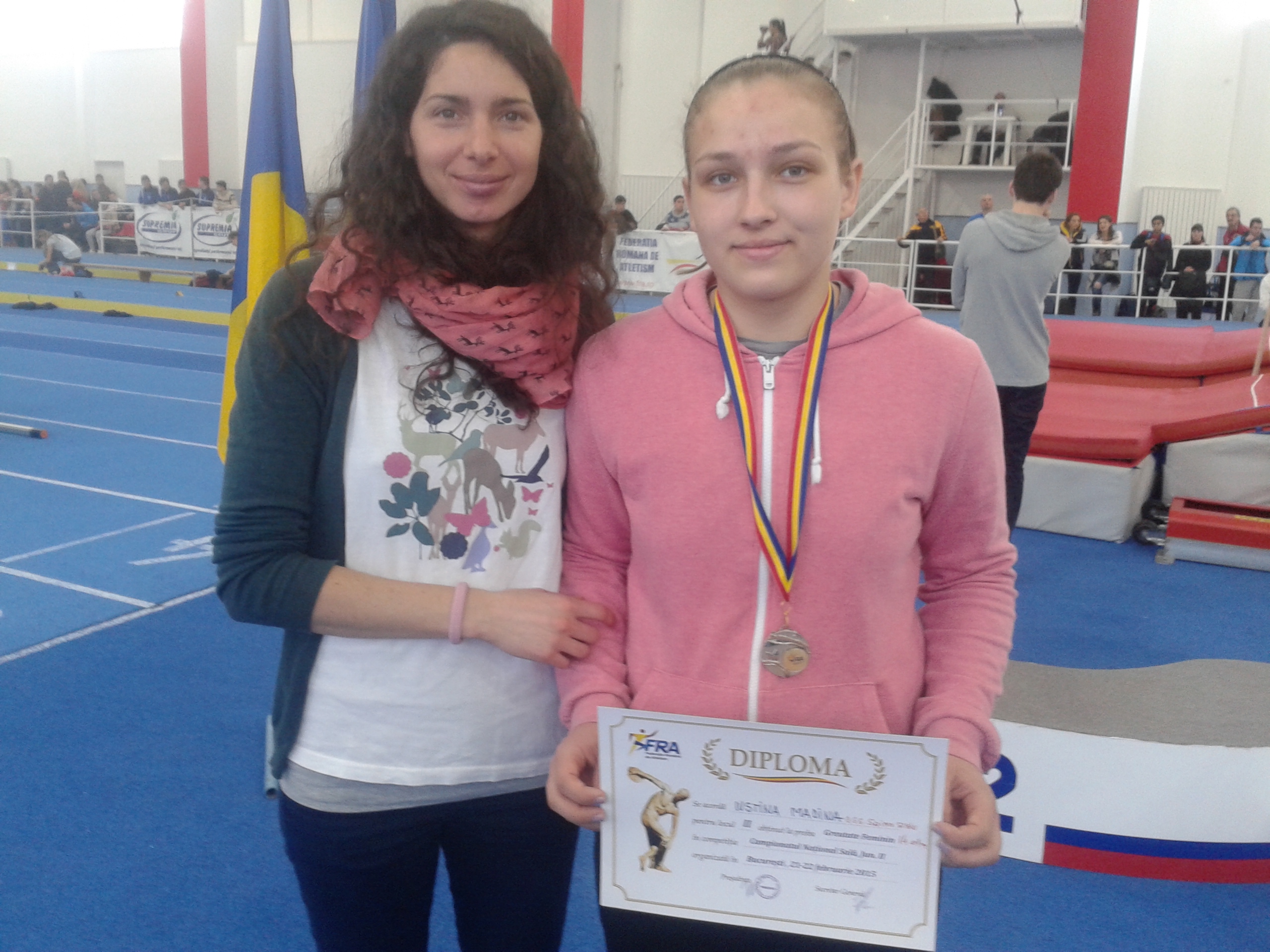 Andreea Necşoiu, locul III la aruncarea suliţei (42.49m) şi la aruncarea greutăţii (12.01m) ; prof. Ligia Cuciorovschi
