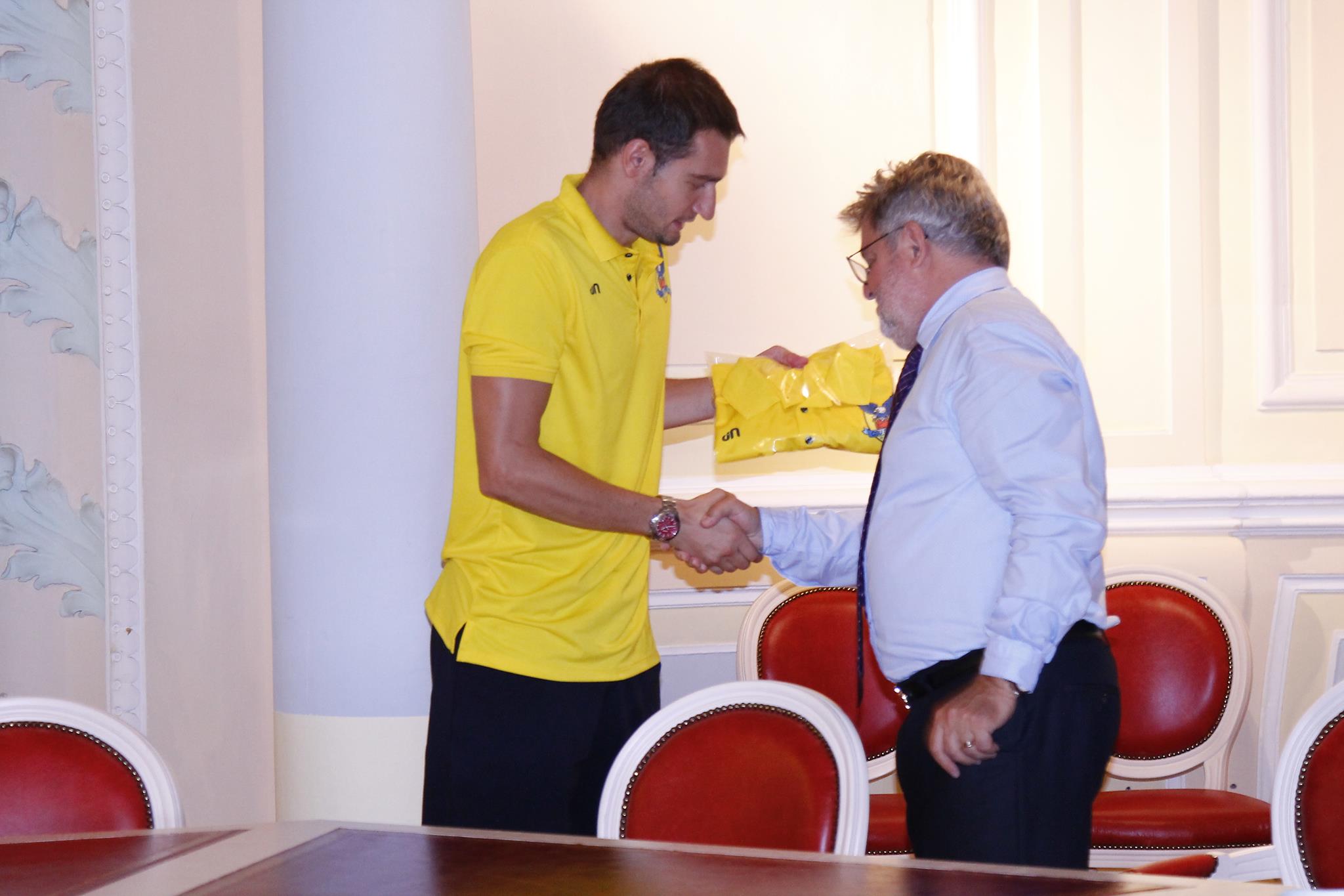 Acesta le-a oferit fiecărui reprezentant al CSU o insignă a Universităţii. De partea cealaltă, căpitanul Igor Mijajlovic i-a oferit un tricou galben-albastru, tricou pe care Ioan Bondrea l-a îmbrăcat imediat cu mândrie. „Domnule rector, vă mulţumim că ne-aţi primit la dumneavoastră. Am dorit să venim la dumneavoastră să vă prezentăm echipa pe care o avem în acest sezon. V-am simţit tot timpul alături de noi în această perioadă şi acest lucru ne onorează…ne responsabilizează. Toţi cei de aici ne dorim să avem rezultate bune. Să facem Universitatea mândră de echipa noastră”, a declarat Horaţiu Floca, director al CSU Sibiu.