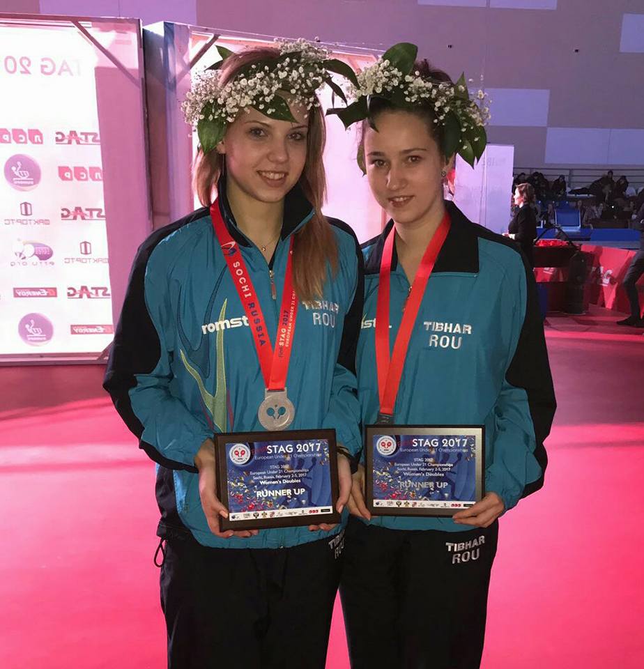 Andreea Dragoman şi Adina Diaconu au fost premiate pentru prestaţia avută la masa de tenis. Jucătoarele românce au primit fiecare o plachetă, o medalie şi o cunună de lauri. Ele au terminat pe locul II la Campionatul European sub 21 ani, la competiţia ce s-a desfăşurat la Sochi, Rusia (2-5 februarie). Mai jos vă prezentăm câteva poze cu sportivele noastre după marea reuşită: