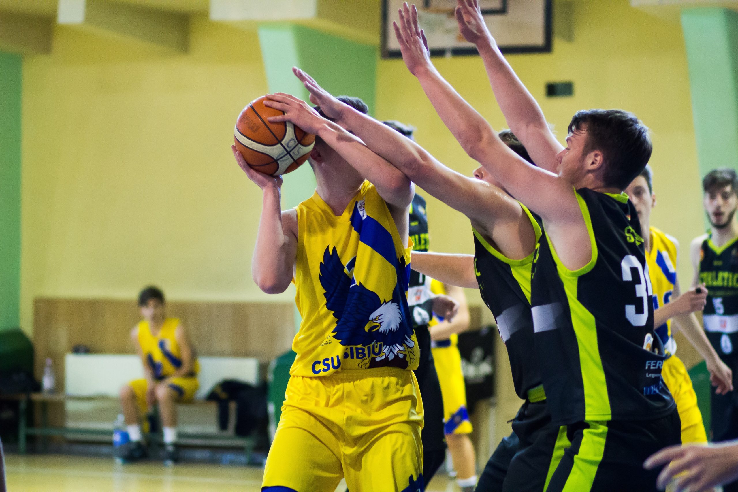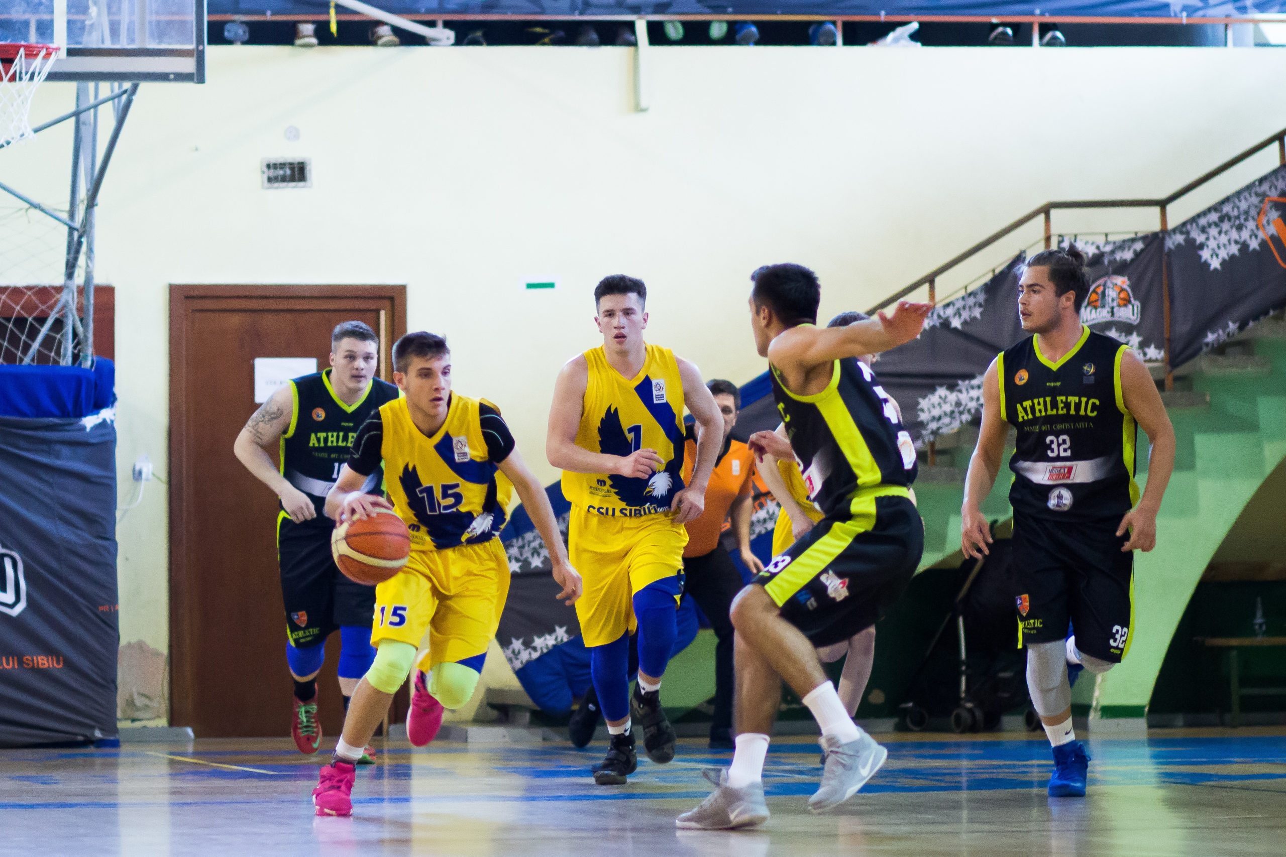IMG_9375Jucătorii antrenaţi de Alexandru Kovacs au făcut o nouă partidă mare în Campionatul Naţional de Baschet Masculin. Cu puţin timp în urmă, la Sala Mică de lângă Teatrul Radu Stanca, galben-albaştri au învins ABC Athletic Constanţa, după un joc  splendid. A fost 66-65 la final, învingătoarea fiind hotărâtă abia după fluierul arbitrului. Arena a fost plină, la meci au asistat şi baschetbaliştii echipei de seniori ai lui CSU, şi antrenorul Dan Fleşeriu, şi galeria „vulturilor”. A fost o atmosferă grozavă pe toată durata partidei, care a fost extrem de tensionată.