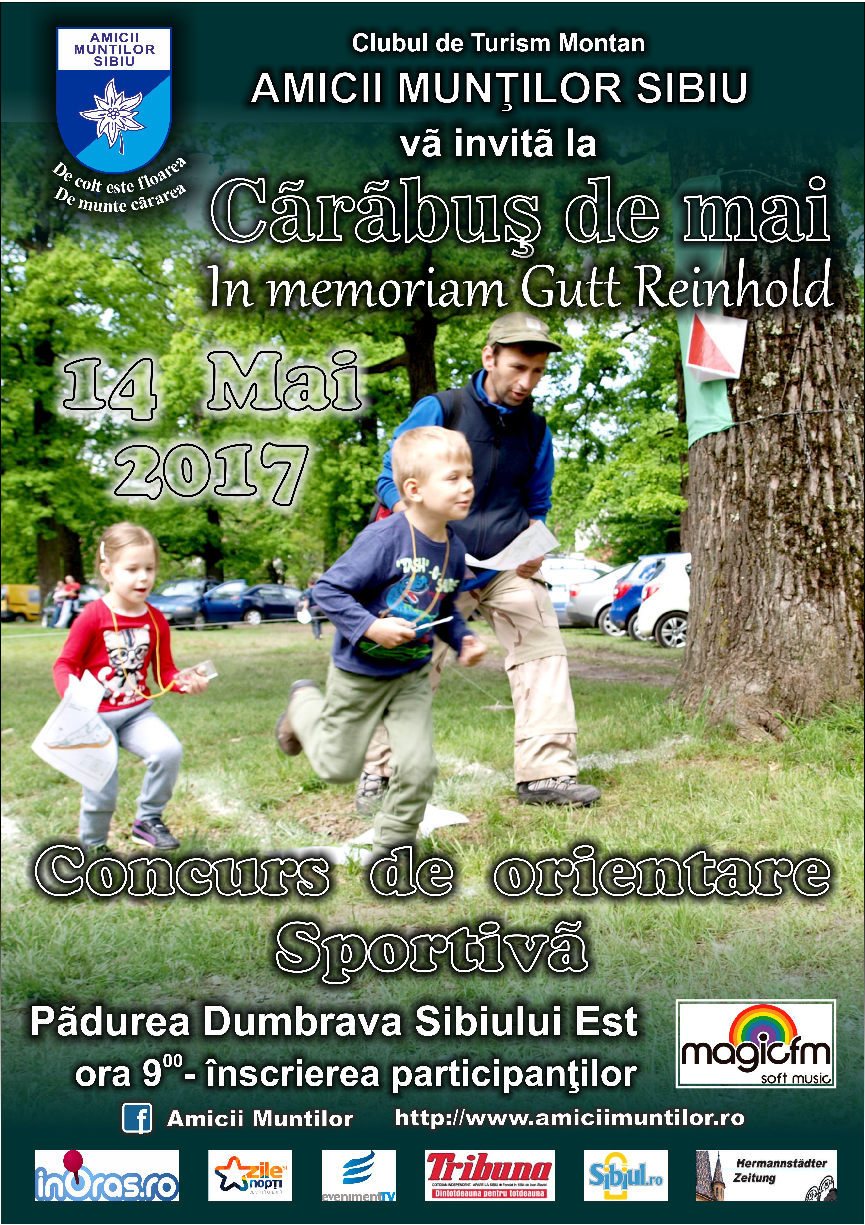 Clubul de Turism Montan „Amicii Munţilor” Sibiu organizează în 14 mai concursul de Orientare Sportivă „Cărăbuş de Mai”. Evenimentul se va desfăşura „In memoriam Gutt Reinhold”. Acţiunea se află la cea de-a zecea ediţie. Aceasta se se va desfăşura în Pădurea Dumbrava Sibiului Est. Participanţii se pot înscrie la concurs începând cu ora 09.00. Întrecerea va avea loc pe mai multe categorii de vârstă, nefiind impusă o limită de vârstă. Nu se percepe taxă de participare. „Acest concurs este o oportunitate atât pentru cei care doresc să fie iniţiaţi în folosirea busolei şi a hărţii, cât şi pentru cei experimentaţi, de a-şi proba agilitatea într-o întrecere sportivă.