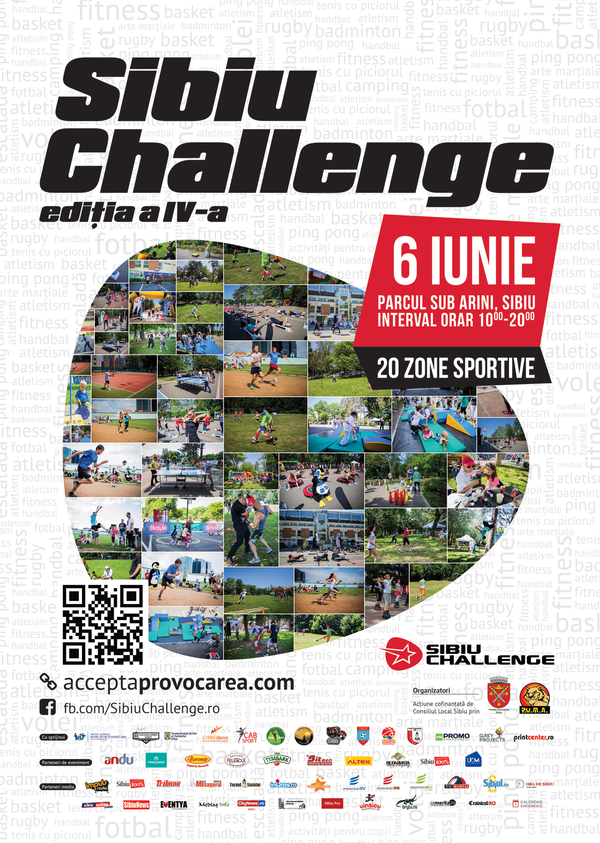 Sibiu ChallengeSibiu Challenge este provocarea anului 2015 pentru iubitorii de mişcare. Cea de-a patra ediţie a evenimentului îşi deschide porţile în data de 6 iunie, în Parcul Sub Arini. Pe tot parcursul zilei, începând cu ora 10 dimineaţa, participanţii au acces nelimitat şi gratuit la toate cele 20 de zone sportive, special amenajate în faţa Stadionului Municipal din Parcul Sub Arini, pe zona de asfalt și de iarbă. Ei pot relaxa la un fotbal, mini-fotbal, baschet, escaladă, tenis cu piciorul, volei, ping-pong, fitness, gimnastică, handbal, arte marțiale, dansuri, badminton, rugby, escaladă, atletism, camping, activităţi pentru copii etc. „Succesul ediţiilor precedente, miile de oameni provocaţi la mişcare în fiecare vară şi reacţia pozitivă a publicului de toate vârstele ne-au motivat să continuăm proiectul şi anul acesta şi să oferim sibienilor posibilitatea de a-şi dedica o zi practicării sporturilor preferate într-un cadru organizat”, a declarat Laura Popa, PR manager al proiectului.