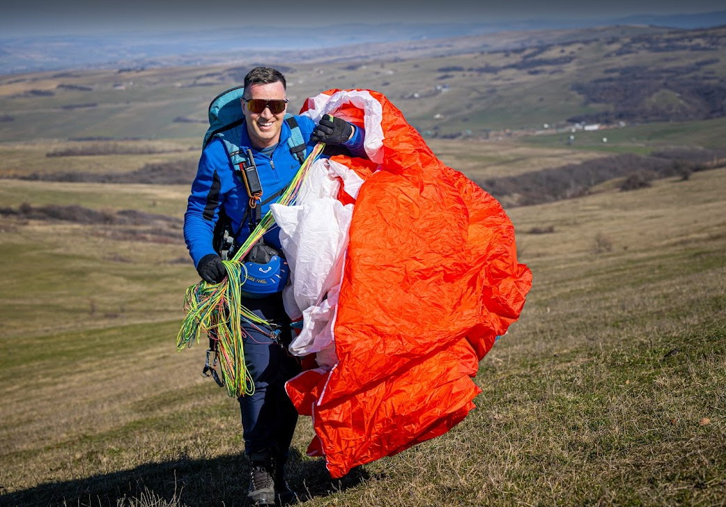 - Condiția fizică: Nu trebuie să fii maratonist, dar trebuie să poți urca dealul cu rucsacul în spate și să ai un pic de coordonare pentru decolare.