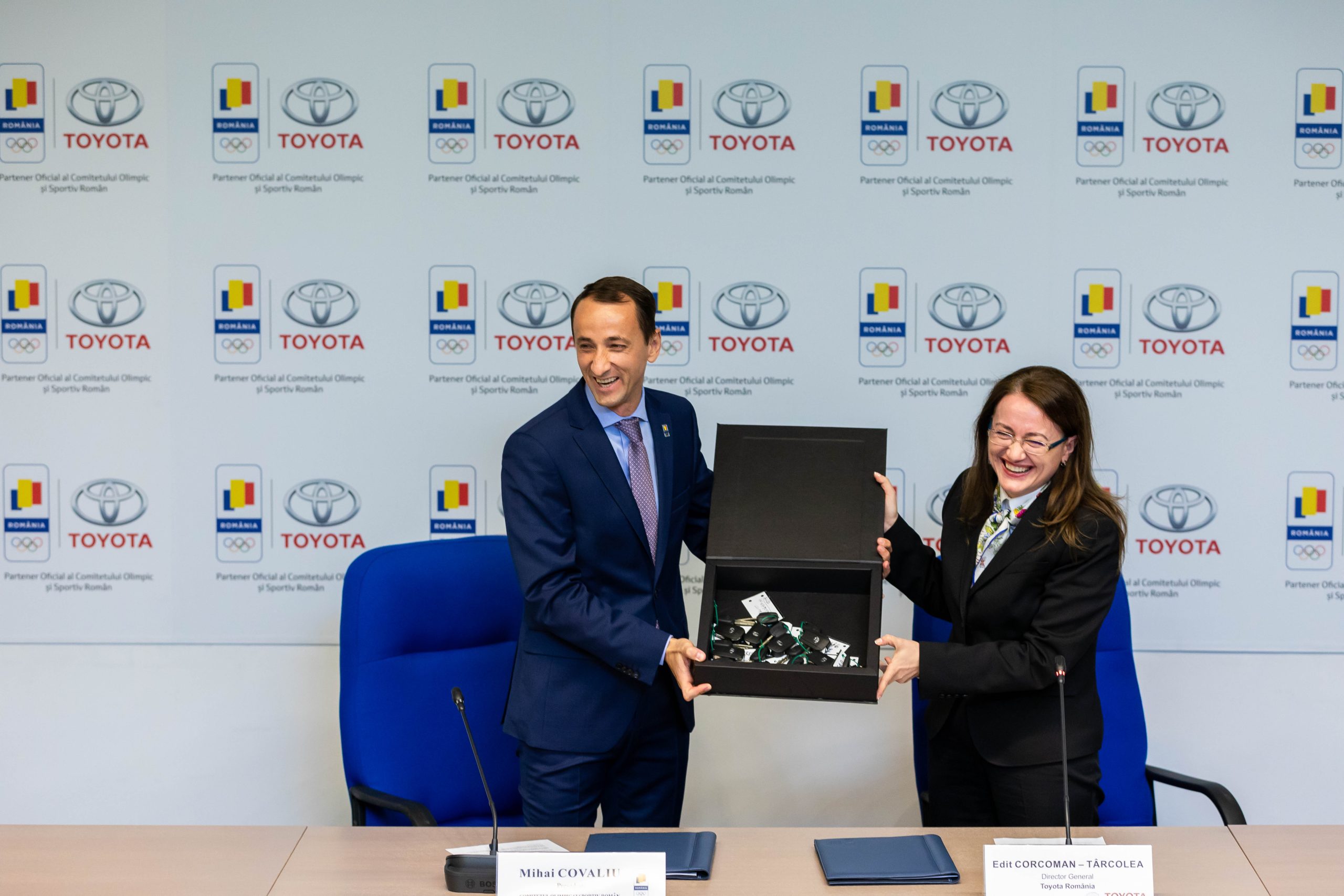 „Suntem bucurosi de parteneriatul cu Toyota Romania. “Impreuna pe drumul spre Tokyo” este un slogan care presupune ambitie, fair-play, perseverenta, performanta. Venim inca o data in sprijinul federatiilor sportive nationale olimpice cu potential la Jocurile Olimpice Tokyo 2020. Un numar de zece federatii sportive vor primi cate o Toyota Proace. Beneficiarele acestui proiect sunt: Federatia Romana de Atletism, Federatia Romana de Canotaj, Federatia Romana de Gimnastica, Federatia Romana de Haltere, Federatia Romana de Judo, Federatia Romana de Kaiac-Canoe, Federatia Romana de Lupte, Federatia Romana de Scrima, Federatia Romana de Tenis de Masa si Federatia Romana de Tir Sportiv. Federatiile vor fi reprezentate de medaliati olimpici remarcabili care au scris si scriu istoria sportului romanesc si care reprezinta exemple de urmat pentru generatiile urmatoare de sportivi.”, a declarat Mihai Covaliu, Presedintele Comitetului Olimpic si Sportiv Roman.