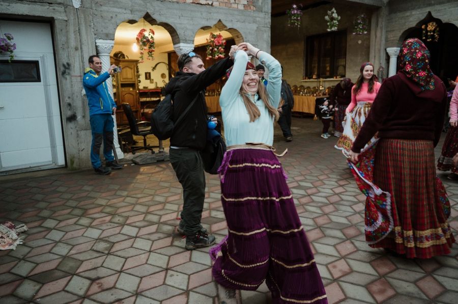 În atelierul său, Victor Clopotar le-a arătat oaspeților săi cum sunt confecționate podoabele din argint și vasele și obiectele decorative din cupru. „A urmat o repriză de dansuri tradiționale, gazdele oferindu-ne costume înflorate. Pentru familia lui Victor Clopotar este ceva uzual să aibă vizitatori, în casa sa ajungând numeroși turiști din afara țării. Am dorit ca și drumeții să descopere tradițiile și gastronomia romilor, multiculturalitatea având o contribuție aparte la identitatea aparte a județului nostru”, a mai declarat Nicoleta Ocneriu.
