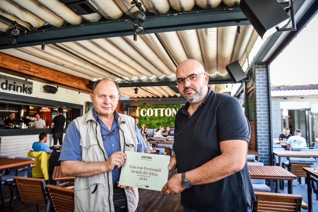 “Dorim în primul rând să mulțumim juriului care a hotărât că merităm premiul si clienților care ne trec pragu. Am renovat terasa în 2019 cu sprijinul designerului Florin Tomescu. Am vrut să creeăm un loc pentru tineri și nu numai. E locul ideal pentru petrecerea timpului liber. Încercăm să îmbinăm muzica bună cu preparate gătite atent de bucatarii noștri.” a spus Adrian Barbu, manager Cotton.