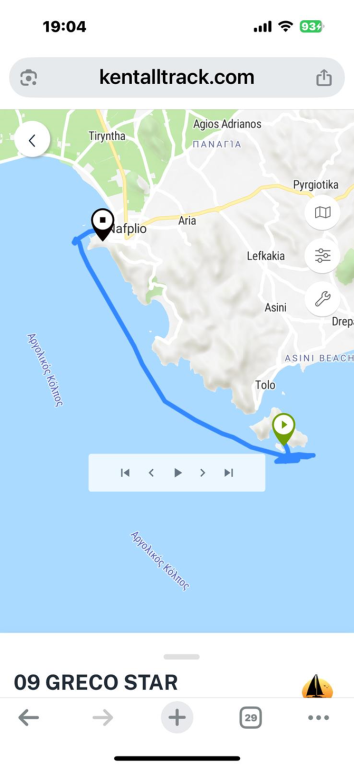 Greșim startul pentru că vântul a scăzut cu două minute înainte de start și noi care voiam să venim lansați, am avut o viteză prea mică, plecăm cu două minute după restul flotei. Arturs și ceilalți au plecat cu toții pe un curs mai larg. Noi nu mai avem cum să-i ajungem din urmă. Astăzi vântul bate din spate, așa că se poate merge în orice direcție, direct spre linia de sosire. Trebuie doar ocolit un cap al Coastei Peloponesului înspre Napflion, unde este amplasată sosirea.