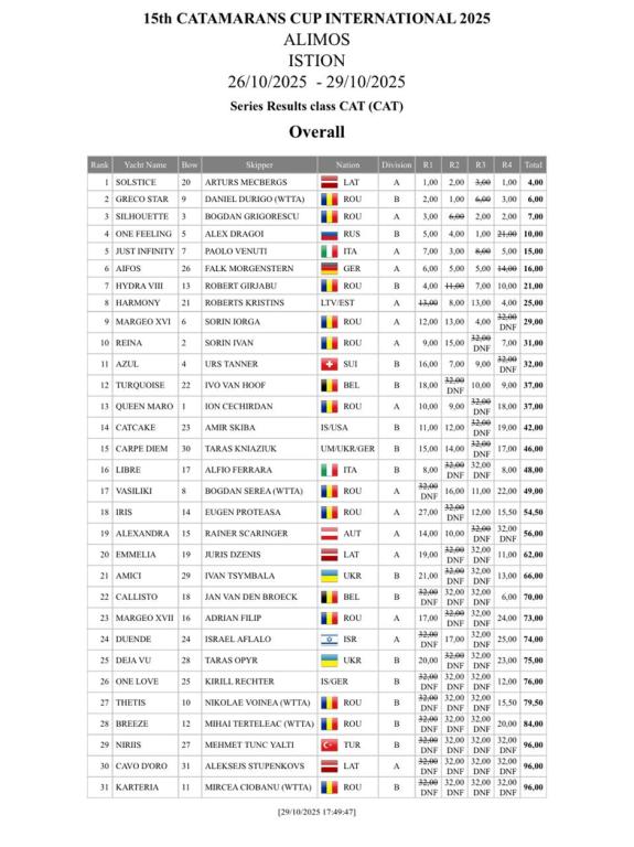 În concluzie, prima mea participare la o regată de catamarane a fost o experiență mult mai plăcută decât mă așteptam și îi mulțumesc skipperului pentru această ocazie. Pentru copii a fost aventura anului, dar și pentru cei mari. Organizarea evenimentului este perfectă, se simte că Istion este una din cele mai mari firme de charter de yachturi din Grecia și se simte și experiența adunată în cele 15 ediții ale Catamarans Cup.