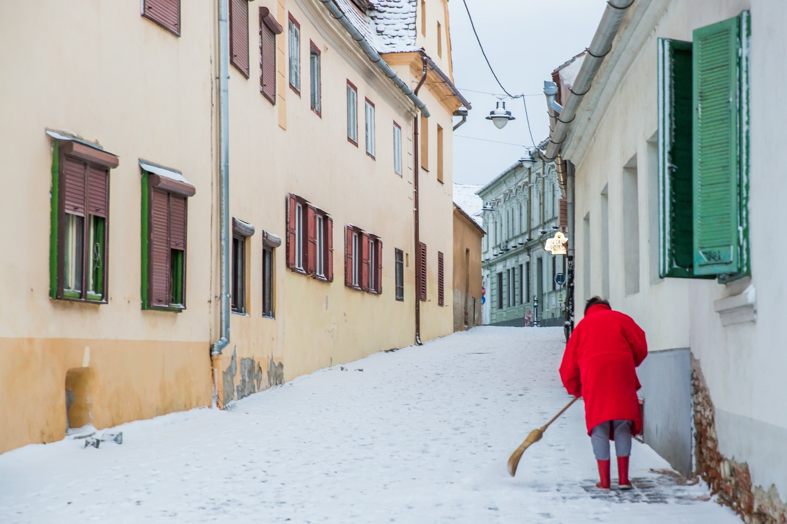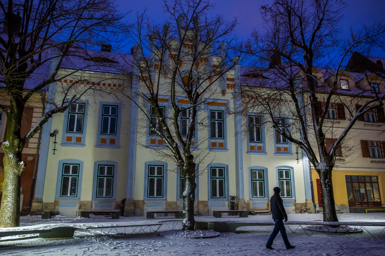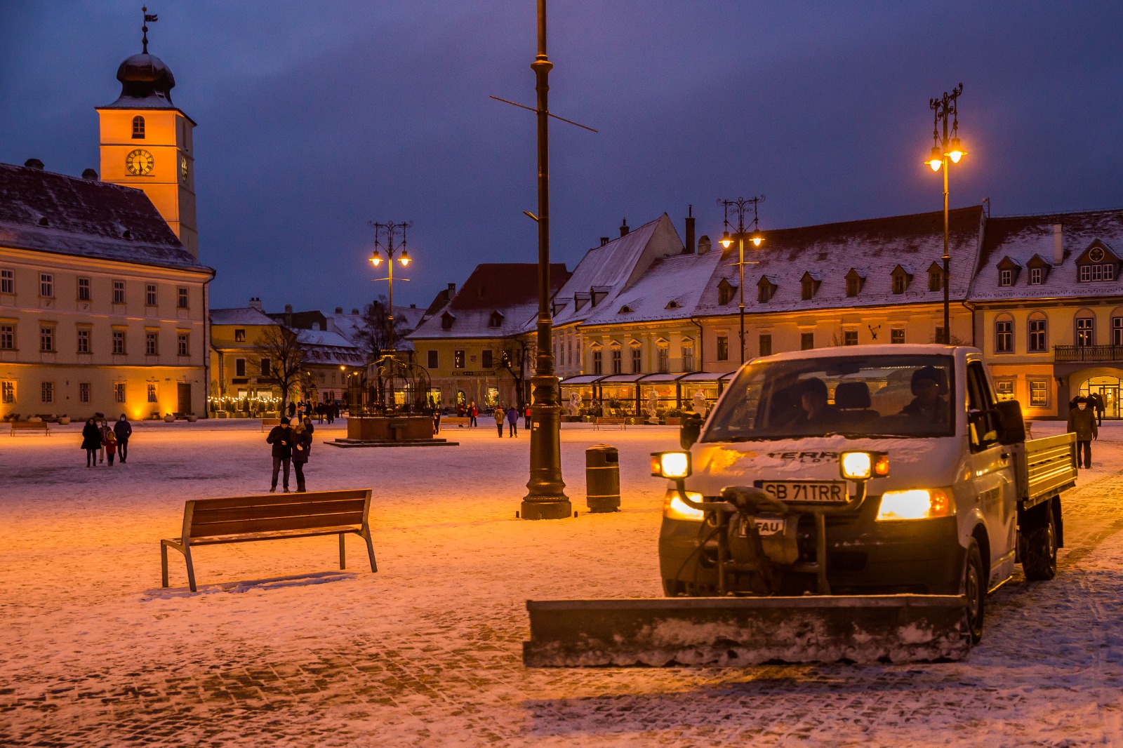 Încă de la primele ore ale dimineții, zăpada s-a așternut peste Sibiu, iar până seara a creat un cadru de basm.