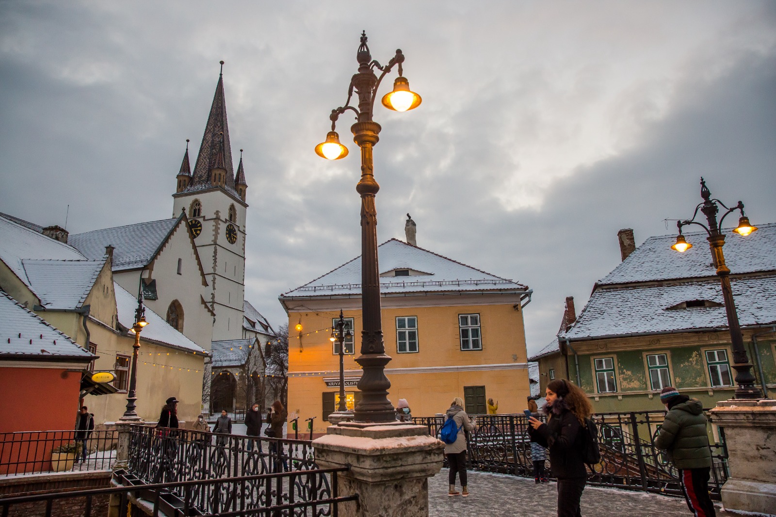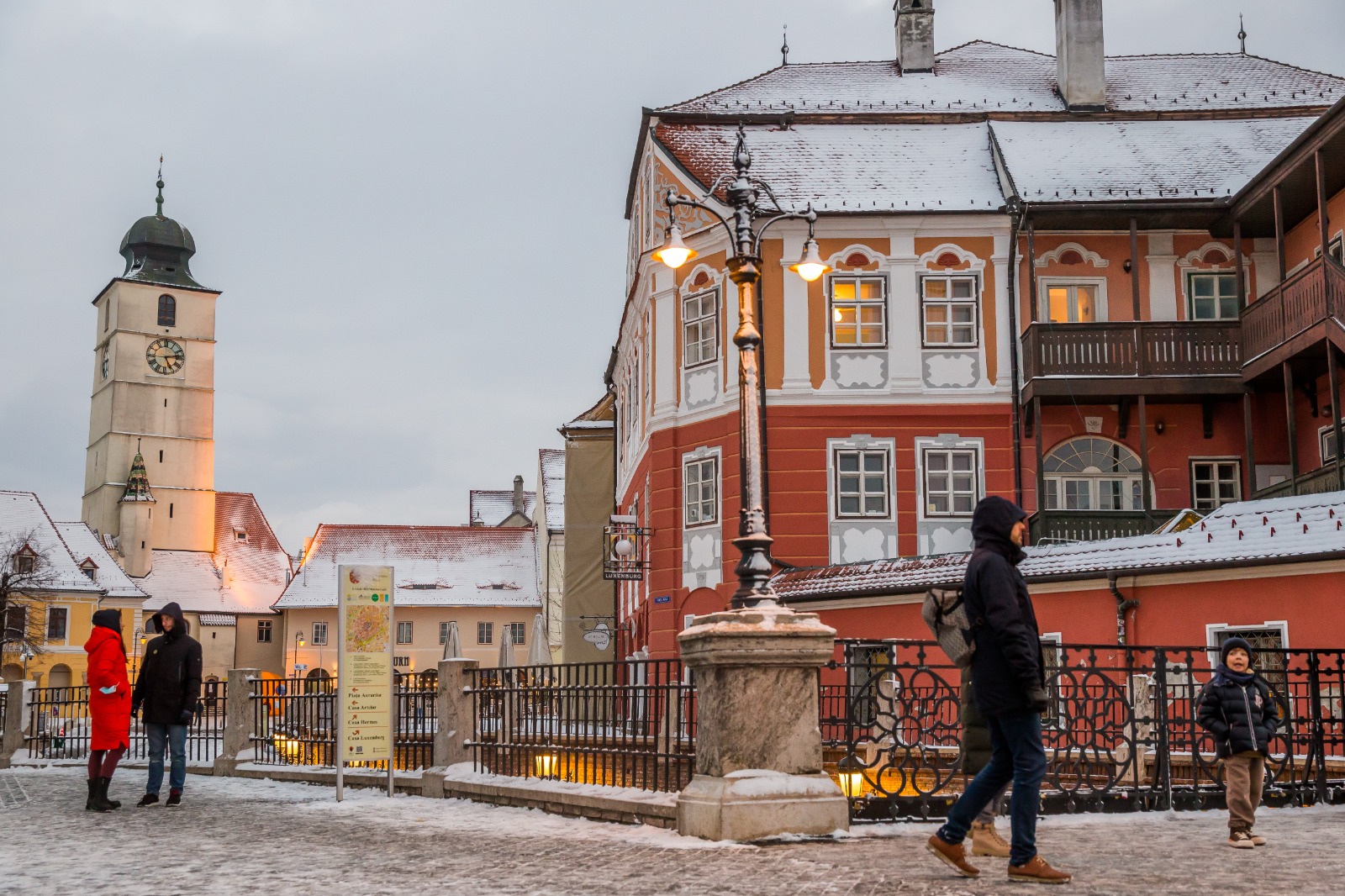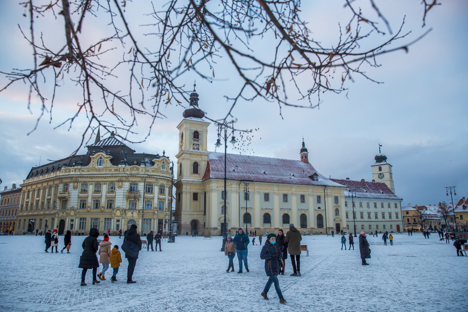 Unii dintre sibieni și-au făcut curaj, în ciuda temperaturilor negative, să iasă din case și să se plimbe prin centrul orașului.
