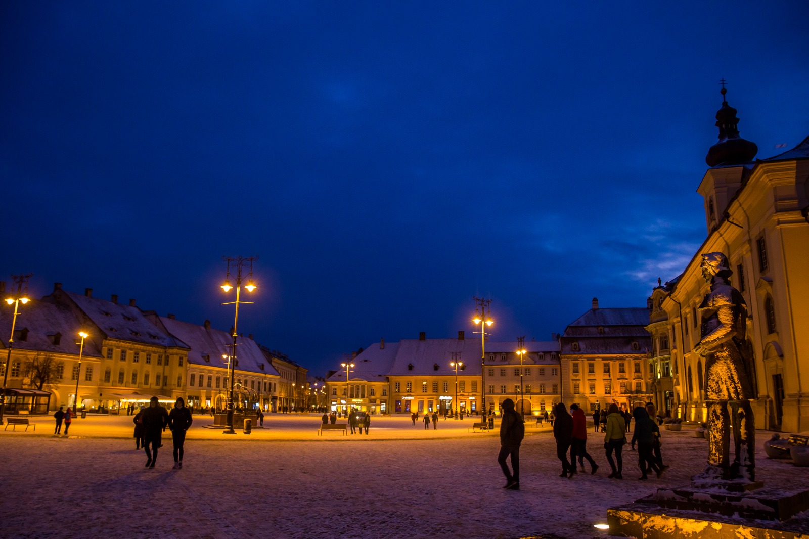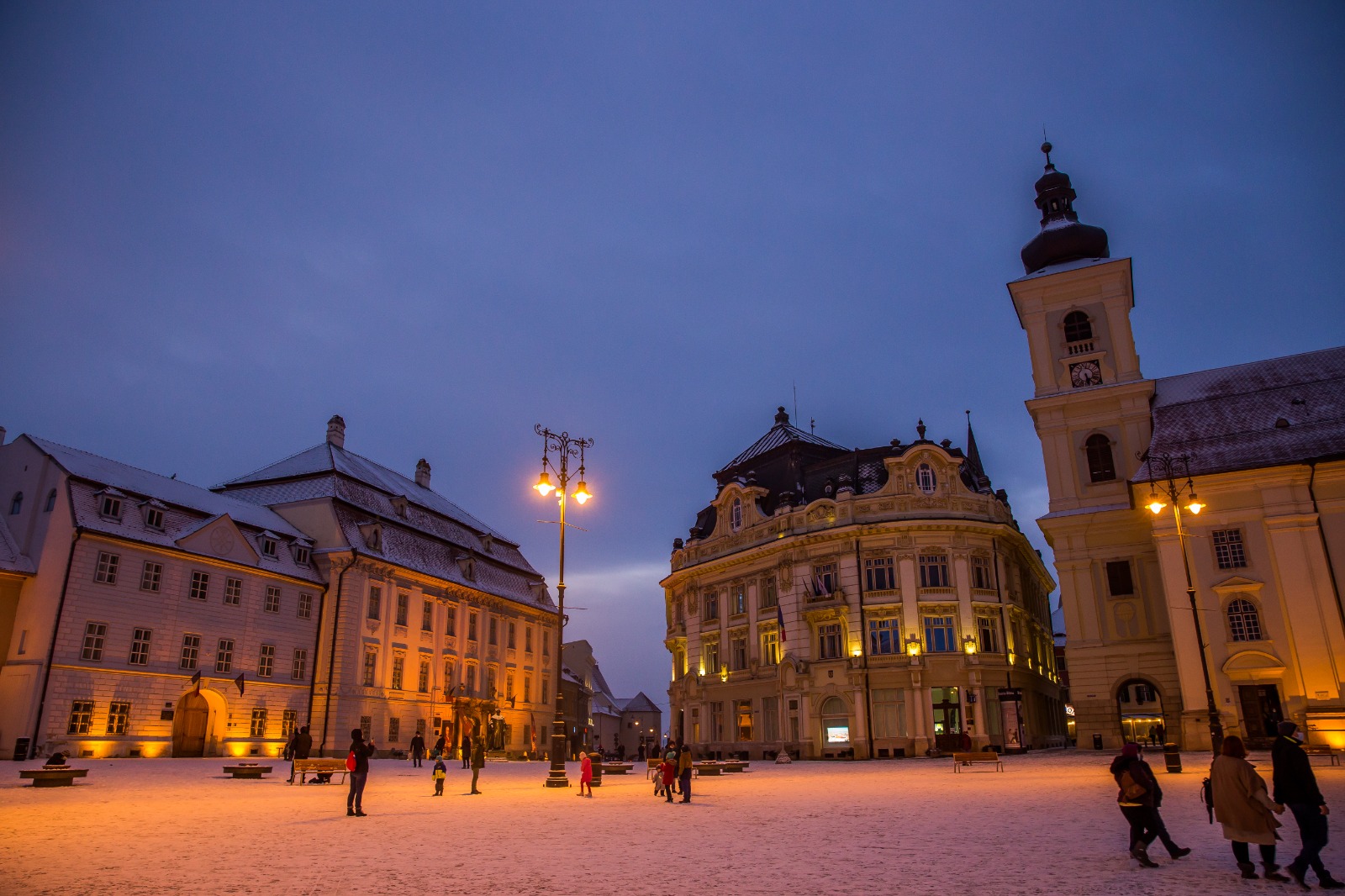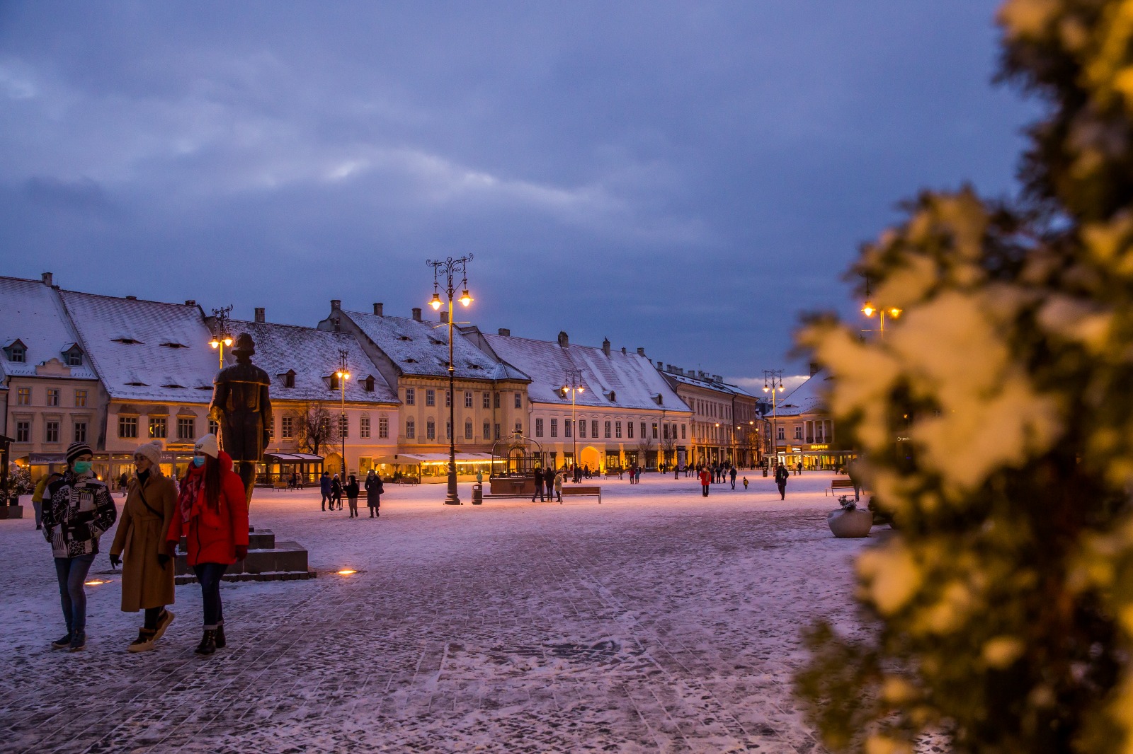 Unii dintre sibieni și-au făcut curaj, în ciuda temperaturilor negative, să iasă din case și să se plimbe prin centrul orașului.
