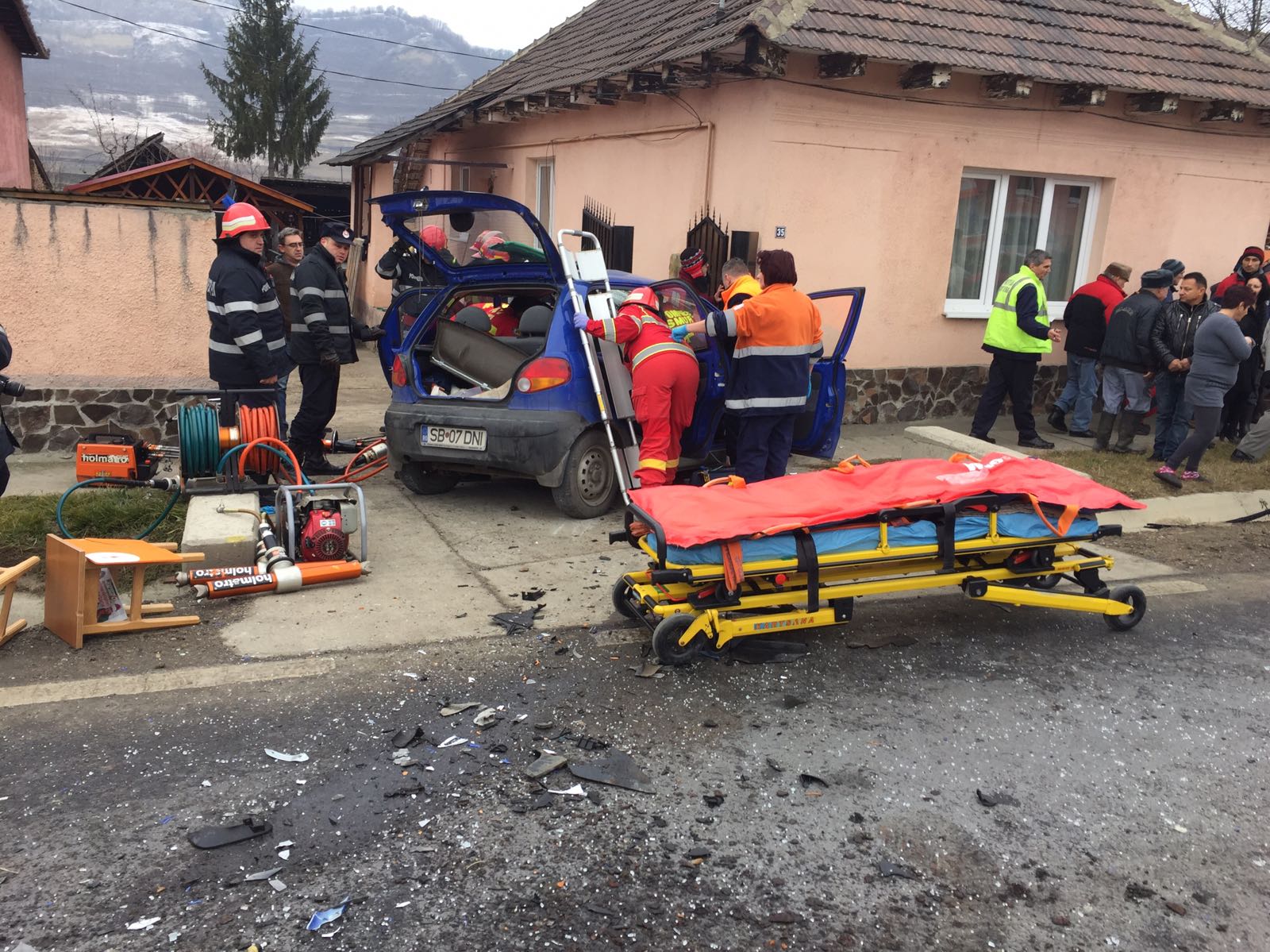 Accident grav la Copșa Mică. Două mașini s-au ciocnit frontal iar în urma impactului două perosane au fost rănite. Una dintre acestea este încarcerată iar după ce va fi scoasă de pompieri va fi rpeluată de un elicopter SMURD și transportată la spital.