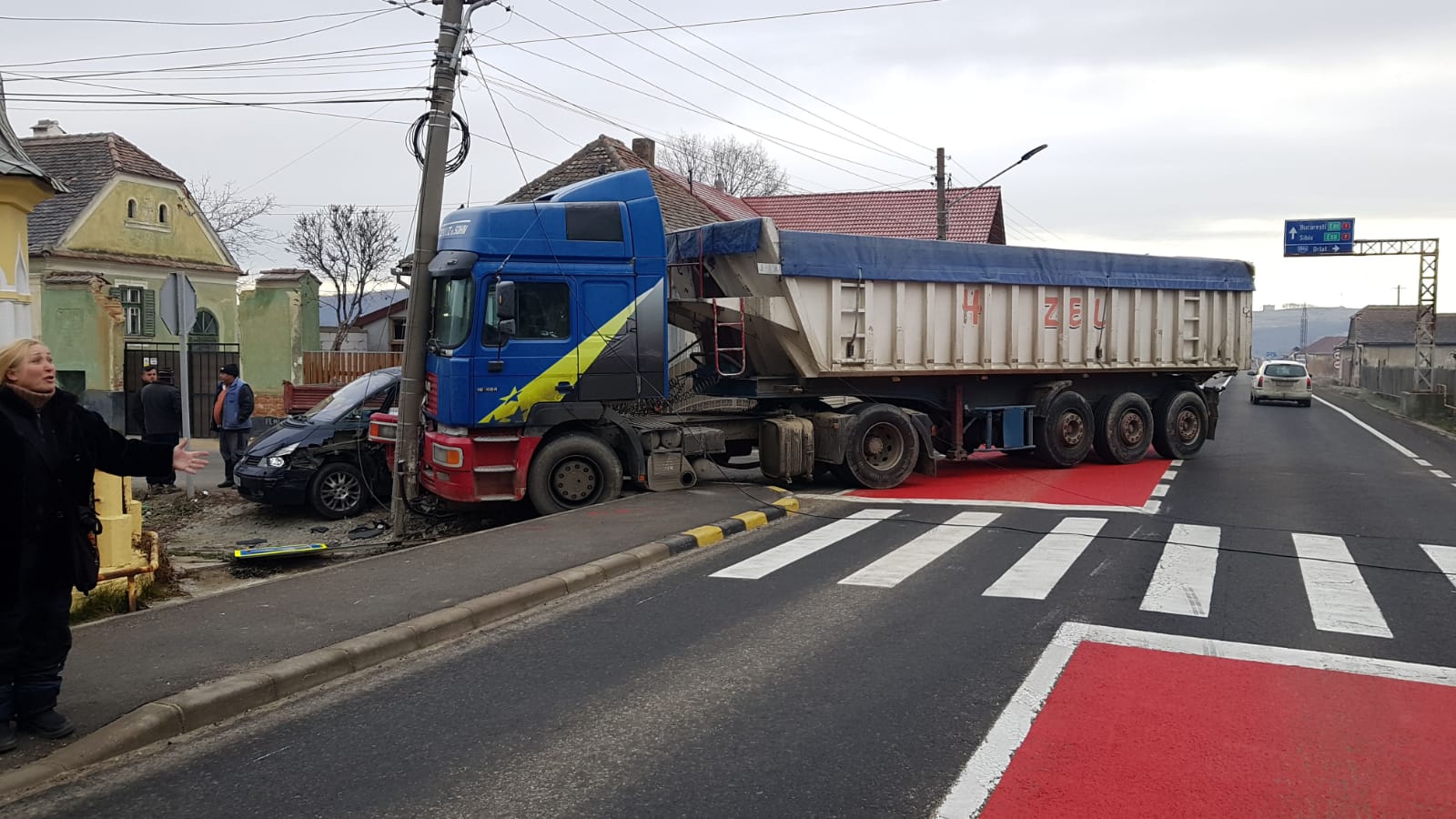 UPDATE-FOTO: Trafic blocat pe DN1, în Săcel din cauza unui accident între o mașină și un camion
