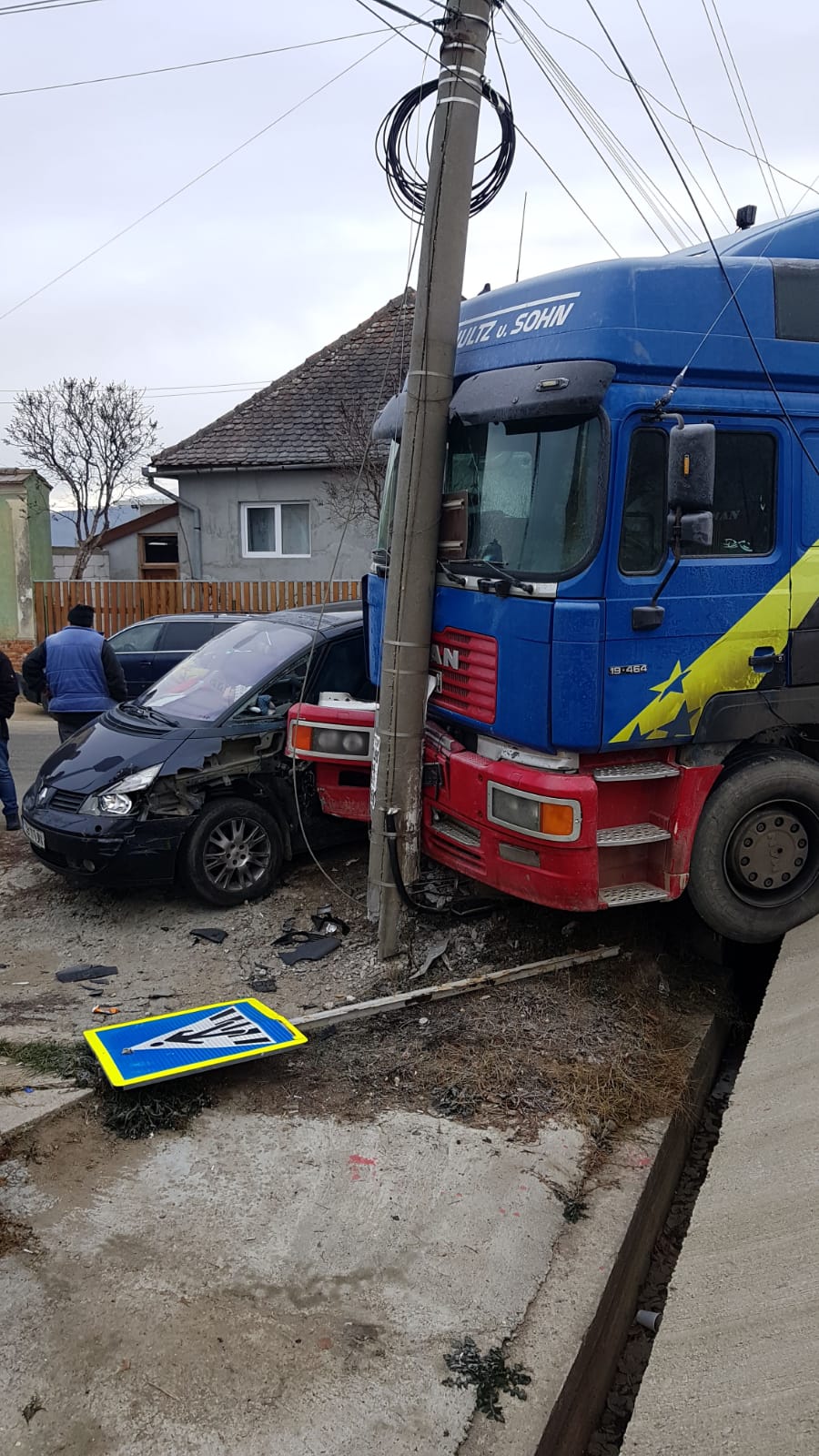 UPDATE-FOTO: Trafic blocat pe DN1, în Săcel din cauza unui accident între o mașină și un camion