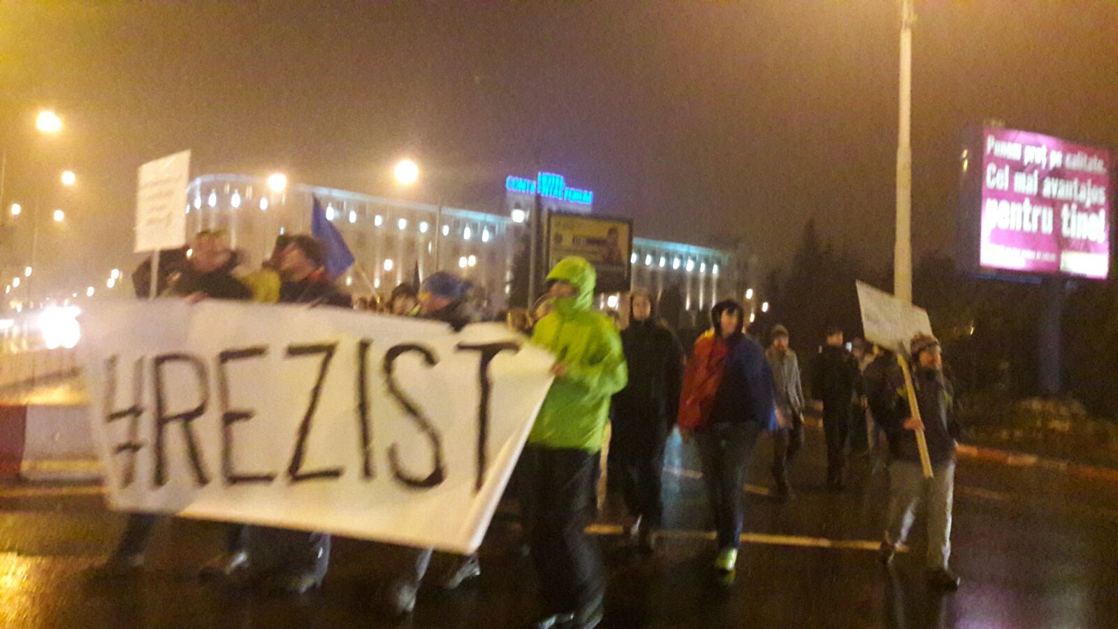 scandează ”Guvern de hoți și mafioți”, ”Rezistăm, nu plecăm”, ”Altă întrebare! Marș la închisoare!”, ”Hoții”.