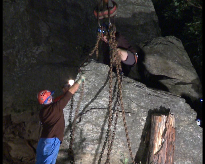 Operaţiune extrem de dificilă la Tilişca. Autorităţile au intervenit miercuri seară pentru a coborî de pe versant stâncile desprinse. S-a lucrat mai bine de 6 ore până când cele două bucăţi uriaşe de piatră au fost înlăturate. A fost nevoie de o macara de mare tonaj şi o echipă de alpinişti utilitari.