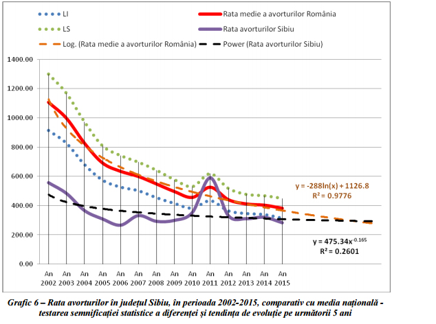 Rata avorturilor avea o valoare de 283,6 0/00 (avorturi la 1.000 născuți vii), județul Sibiu situându-se pe poziția 15 din 42, cu una din cele mai mari scăzute rate ale infertilității din România, semnificativ mai mică decât media națională (378,3 0/00).