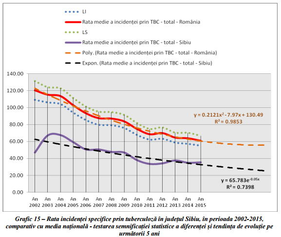 Rata incidenței prin tuberculoză, total populație, avea o valoare de 35,50/0000 (cazuri noi la 100.000 locuitori), județul Sibiu situându-se pe poziția 4 din 42, cu una din cele mai mici rate a incidenței prin tuberculoză din România, semnificativ mai mică decât media națională (60,4 0/0000).