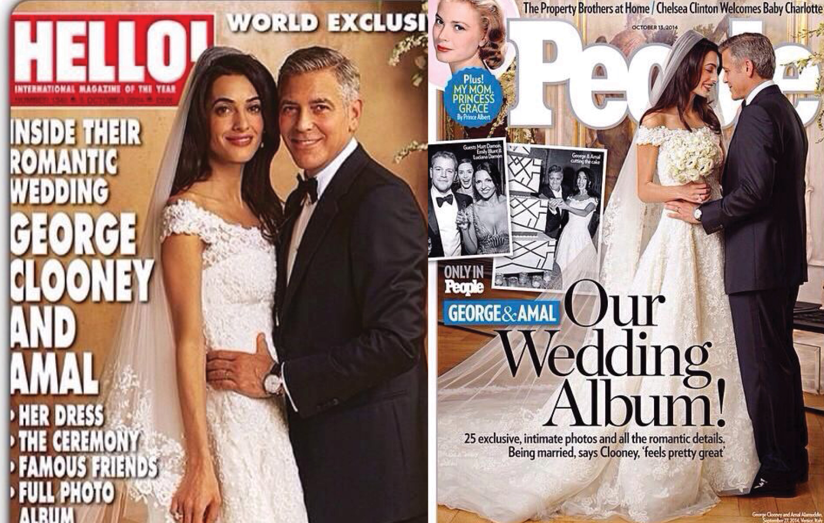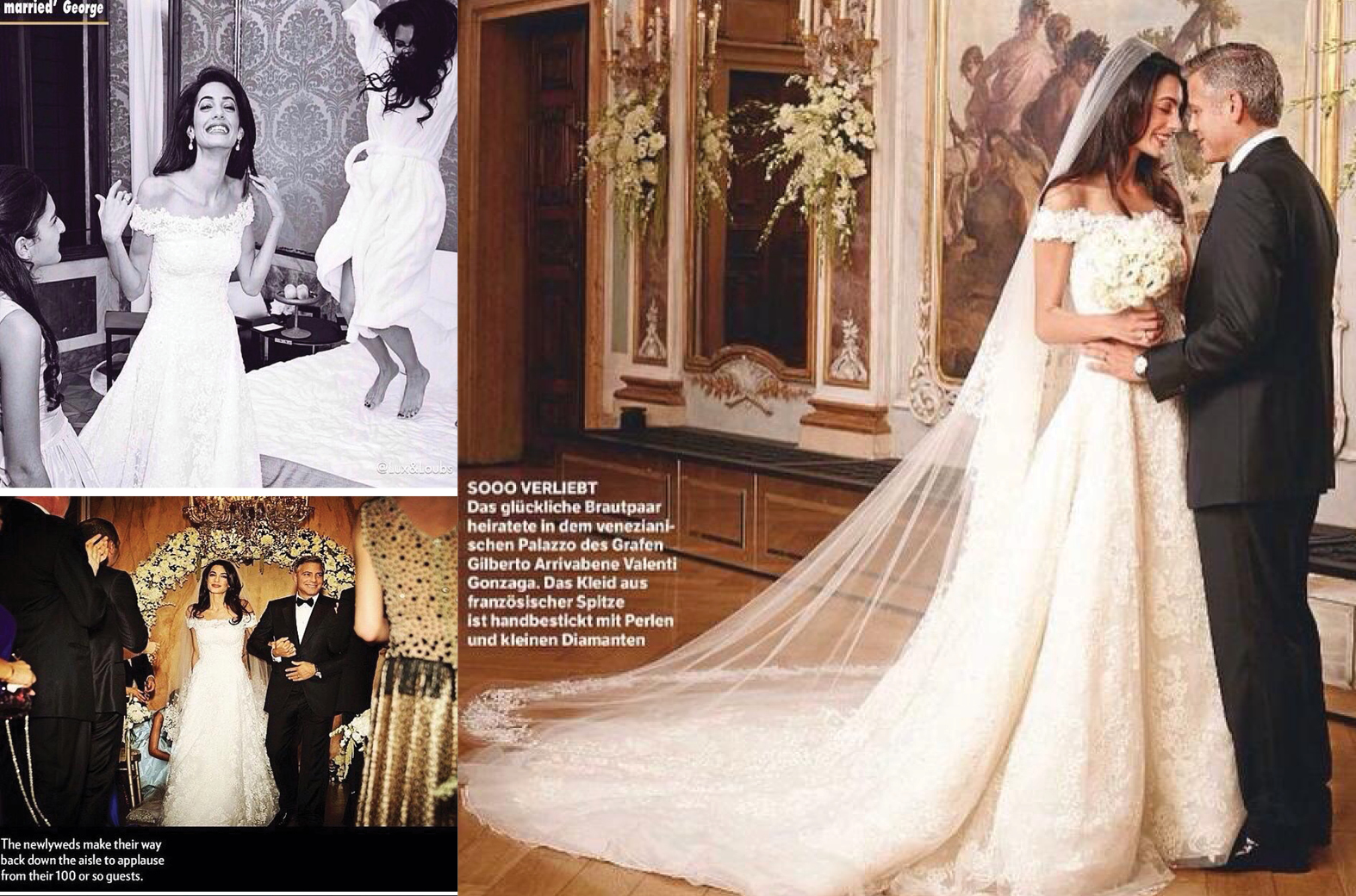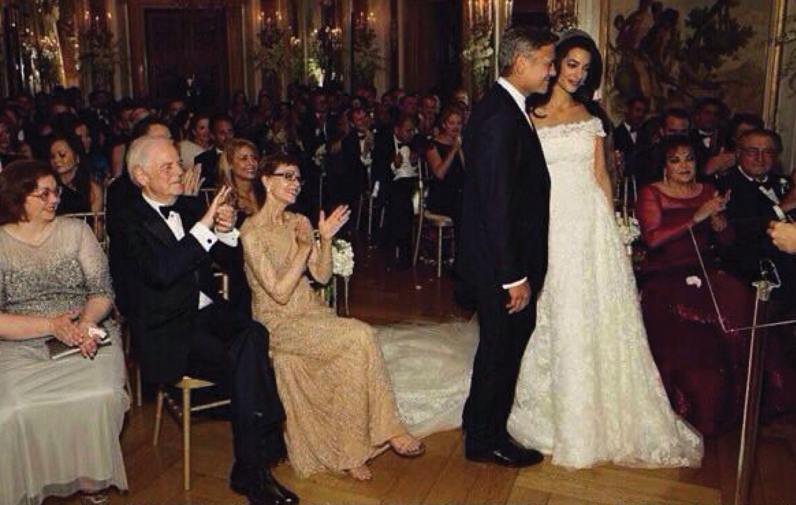 George Clooney şi Amal Alamuddin, care s-au logodit în luna aprilie, după o relaţie de şase luni, s-au căsătorit la Veneţia, în prezenţa unui număr de aproximativ 100 de invitaţi, printre care s-au aflat mai multe celebrităţi din industria de divertisment, precum actorul Matt Damon şi rockerul Bono, pe data de 27 septembrie 2014.