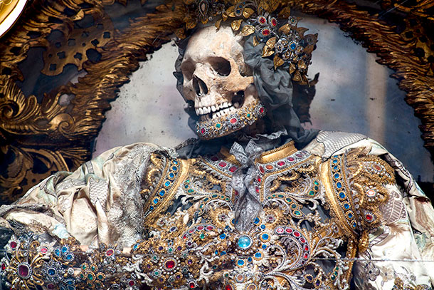 Un profesor de istorie din California, pe numele său Paul Koudounaris şi-a petrecut ultimii trei ani vizitând misterioasele osuare antice şi bisericile din Europa, unde a fotografiat comorile lor macabre. Printre acestea sunt și Sfinţii din Catacombe, o serie de schelete încrustate cu bijuterii, care se spune că ar fi rămăşiţele sfinţilor Creştini.