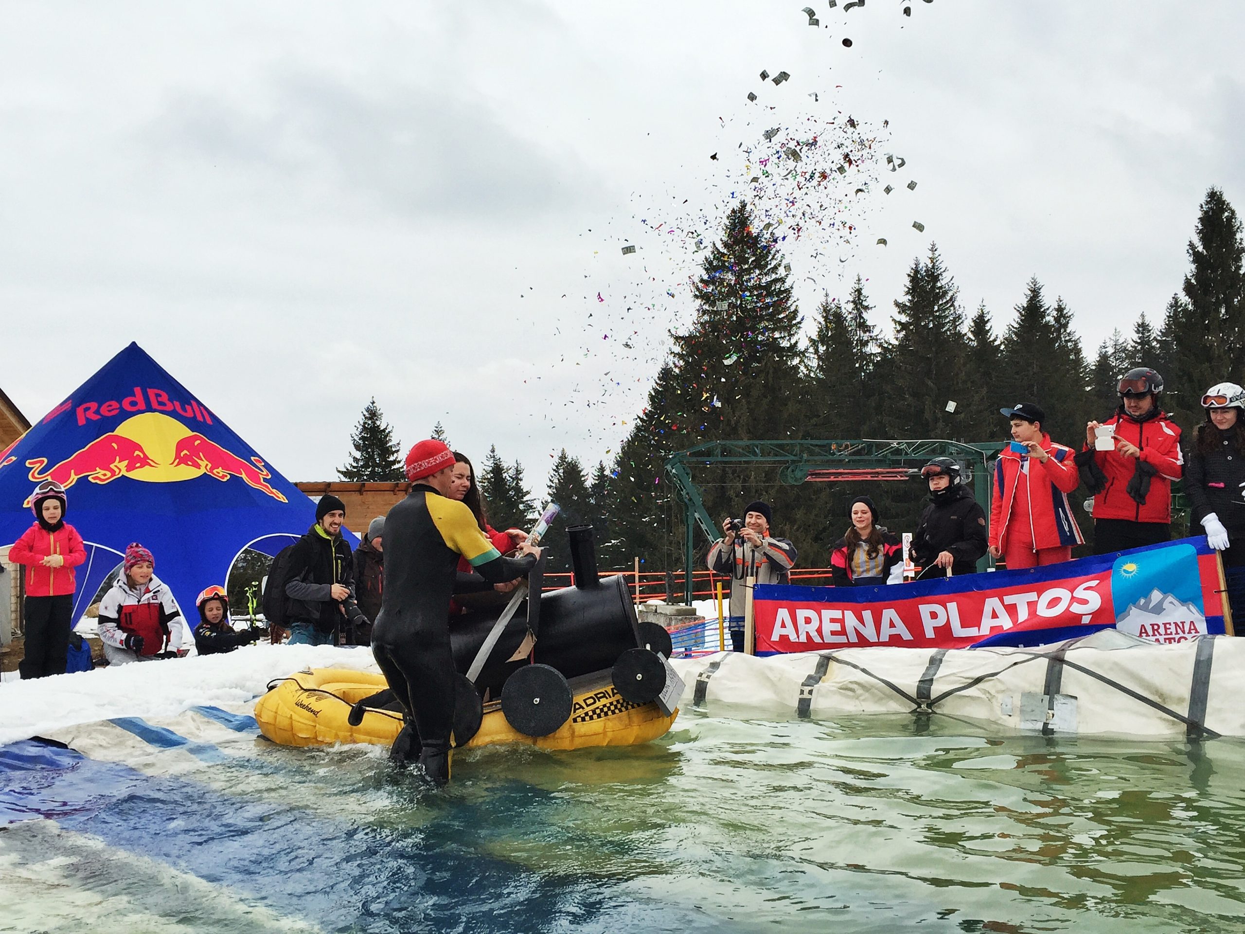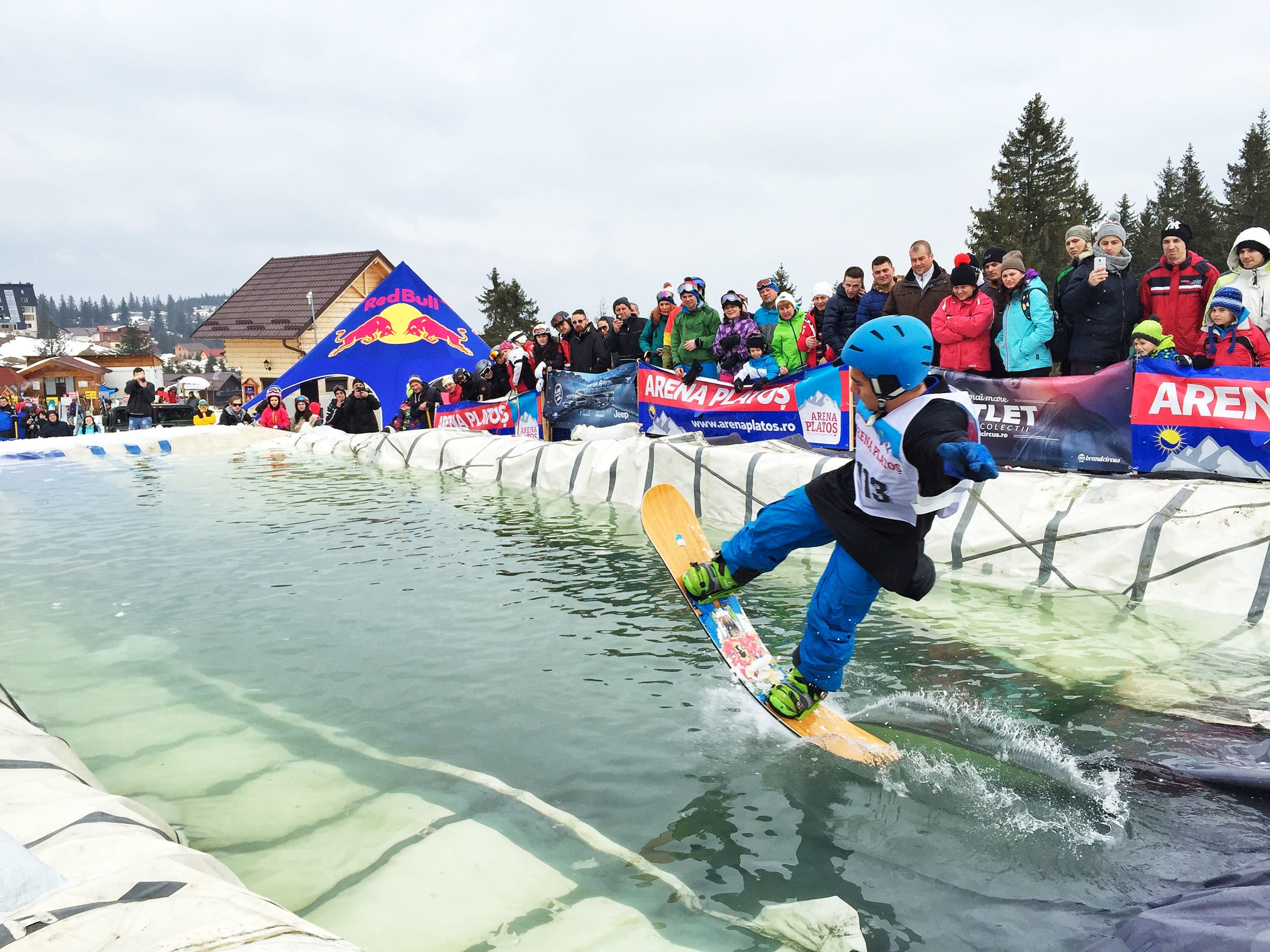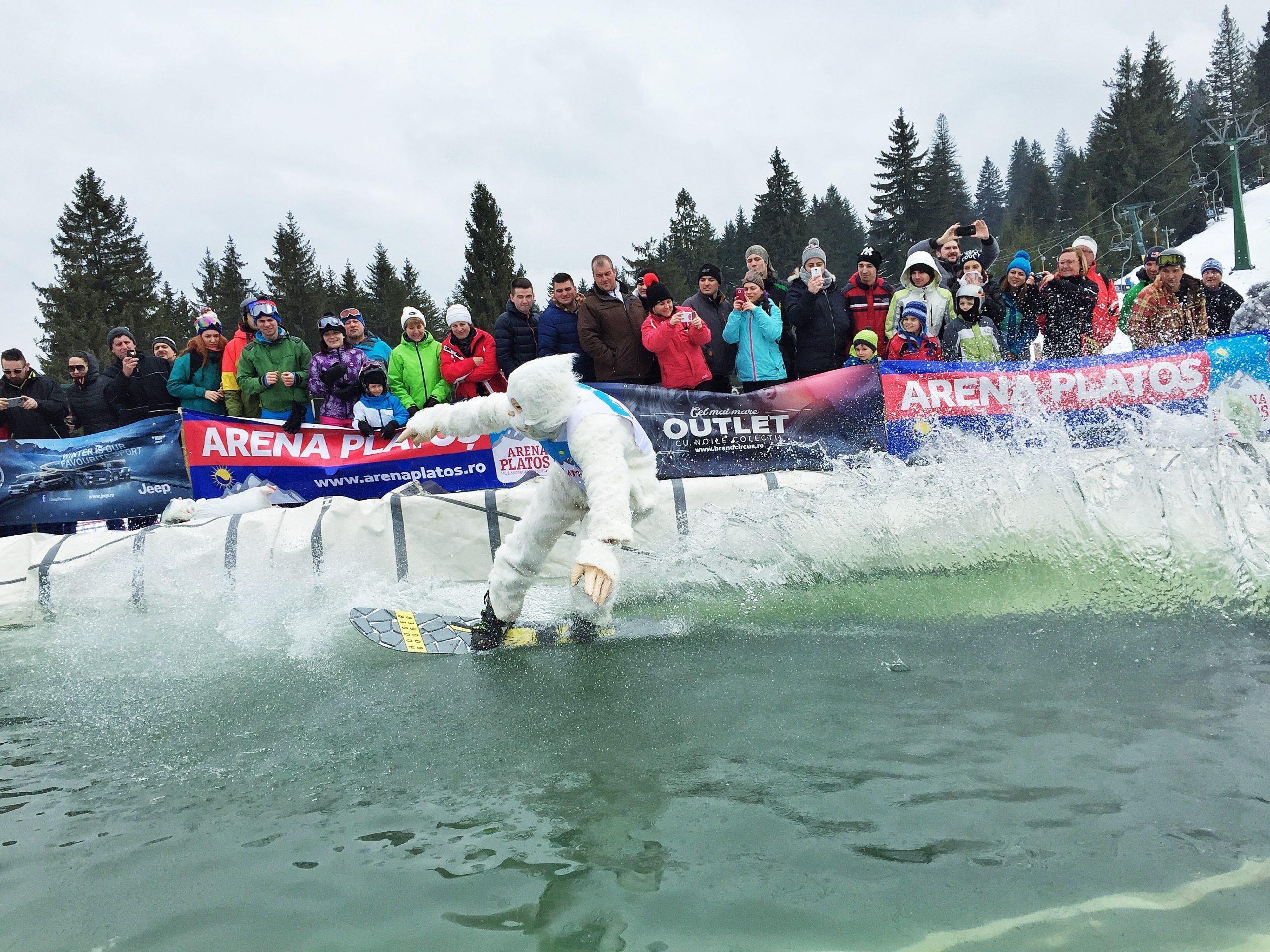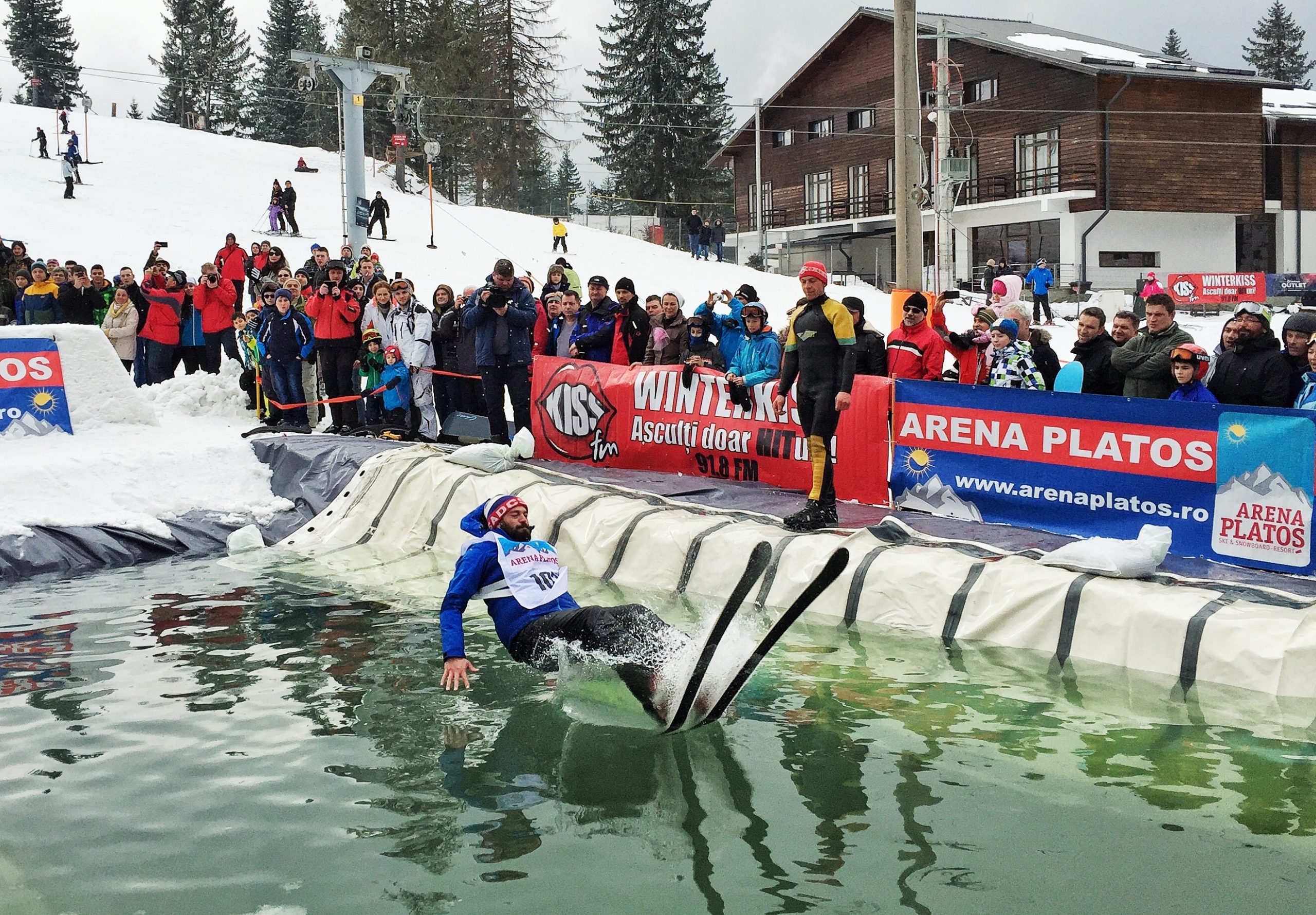 În ciuda frigului, a ceții și a pojghiței de gheață de la suprafața lacului construit la baza pârtiei principale a complexului Arena Platoș, peste 30 de concurenți au luat startul în cel mai spectaculos concurs al sezonului, Slide and Freeze.
