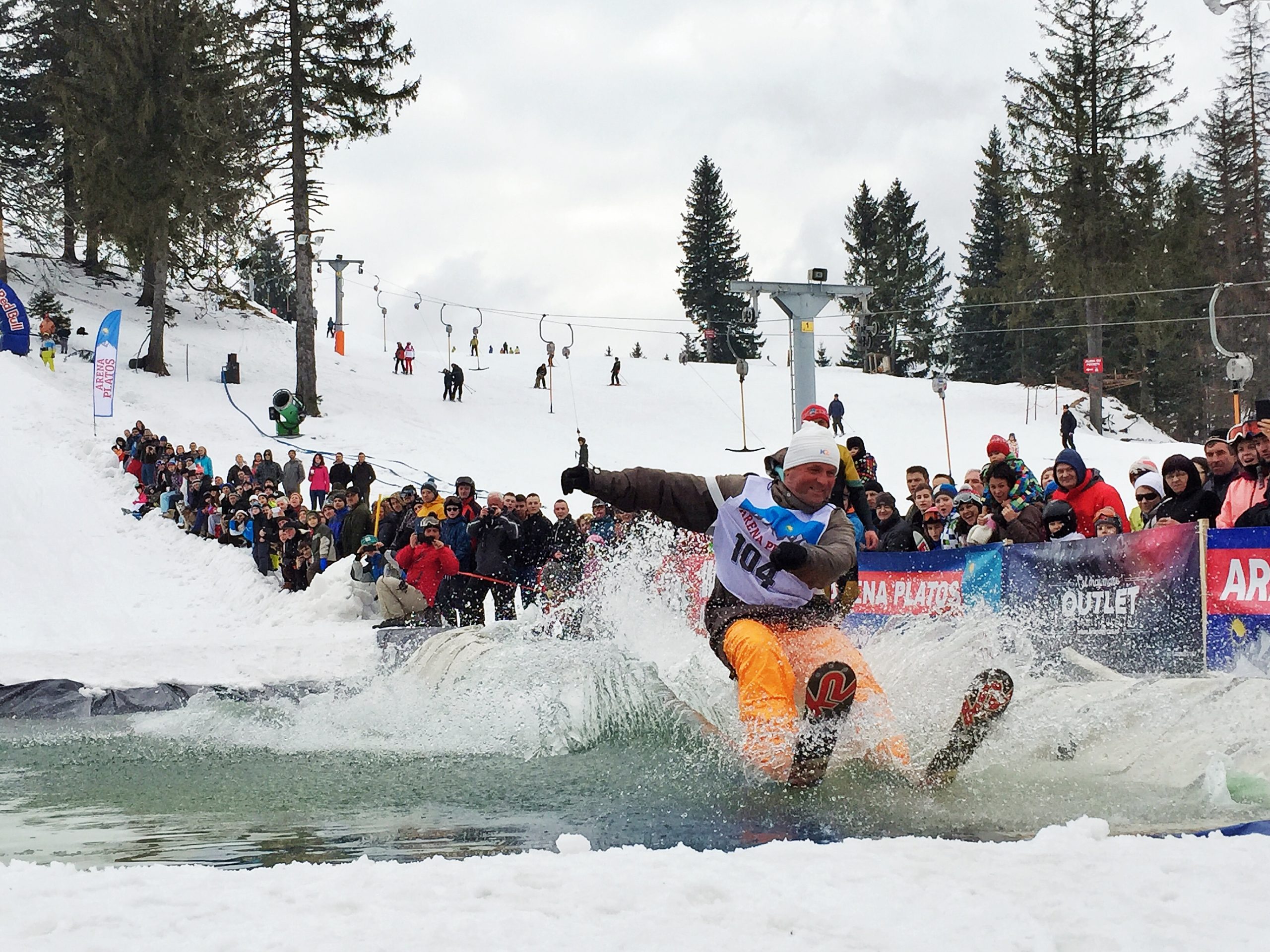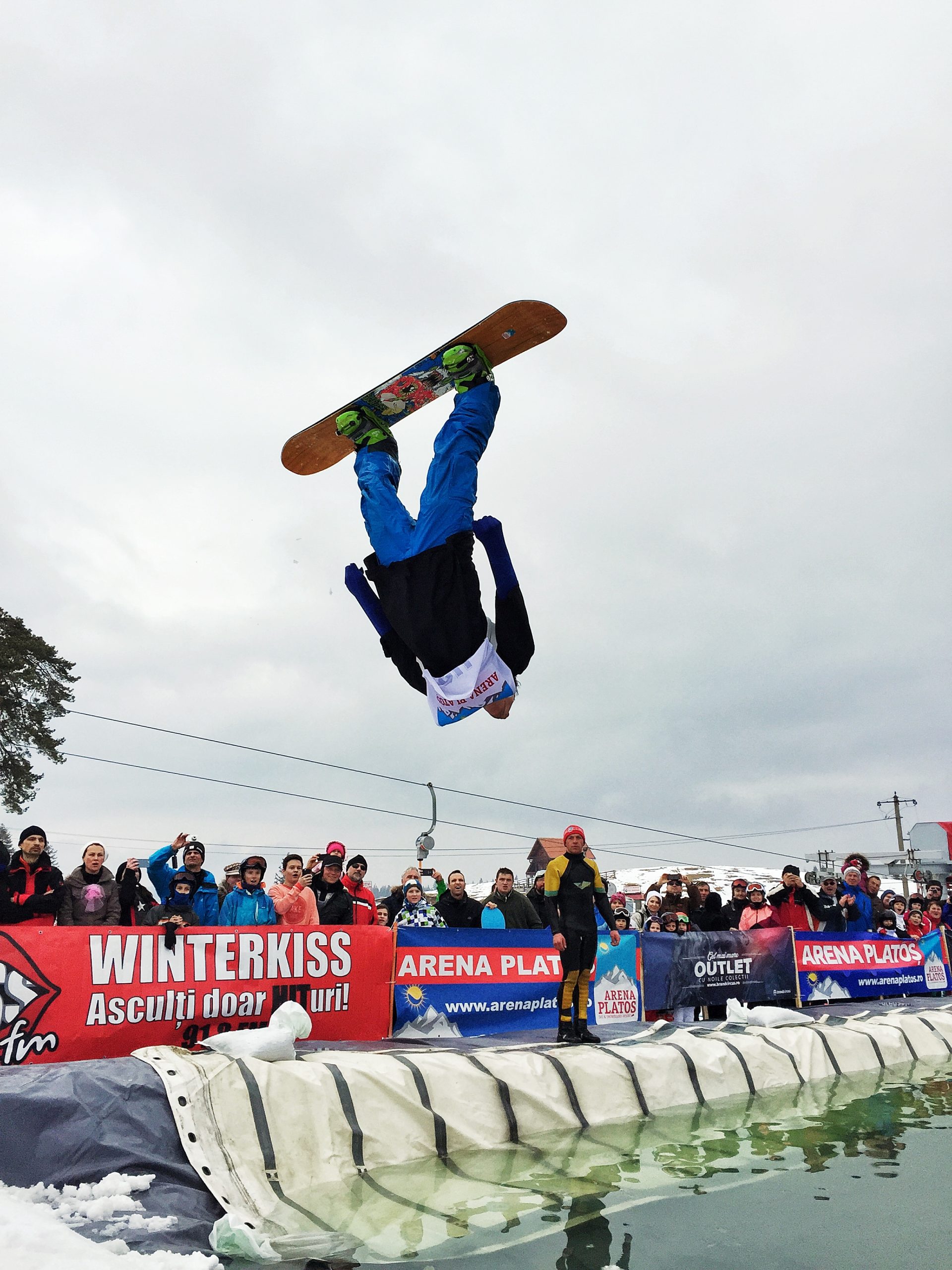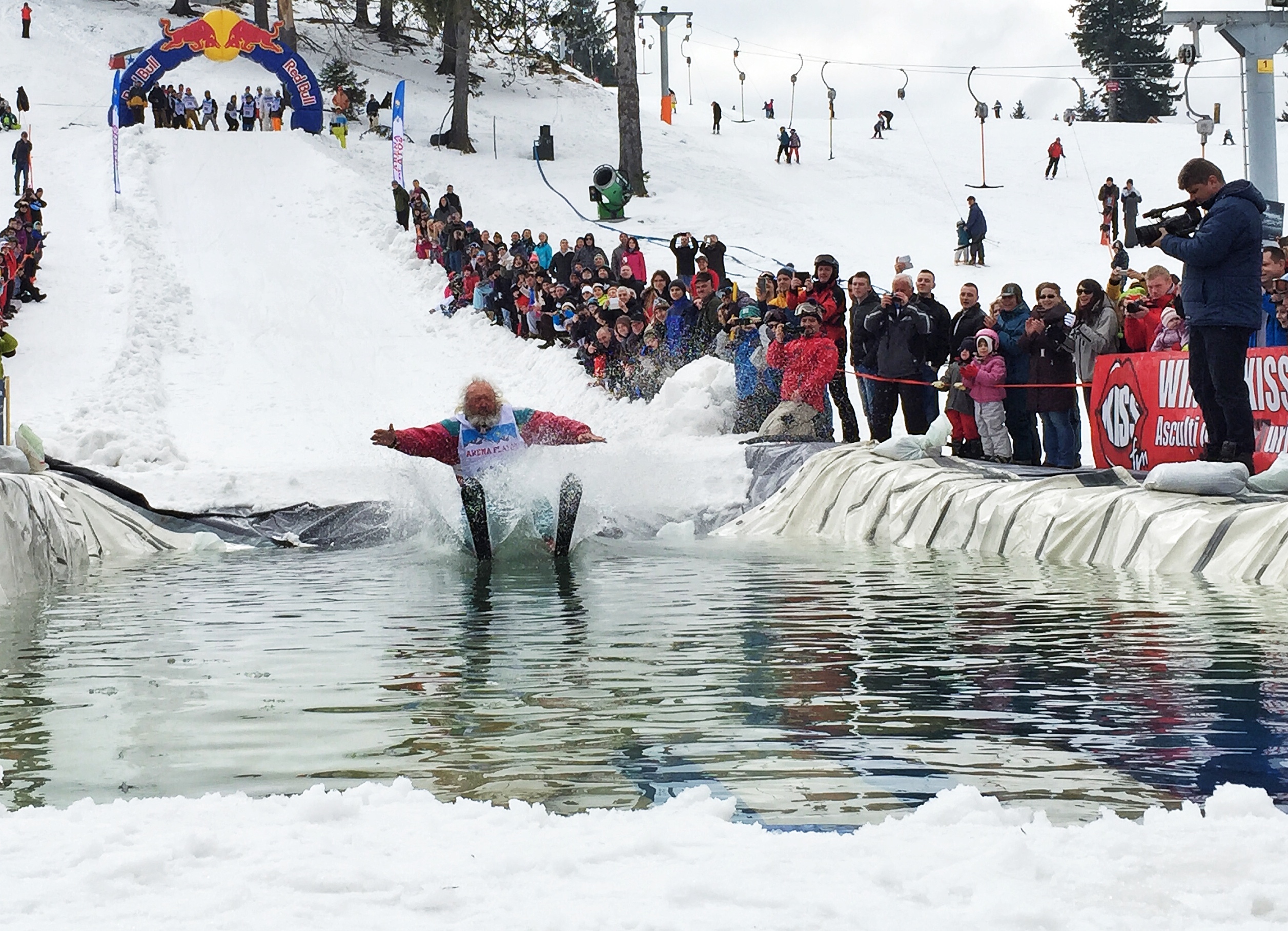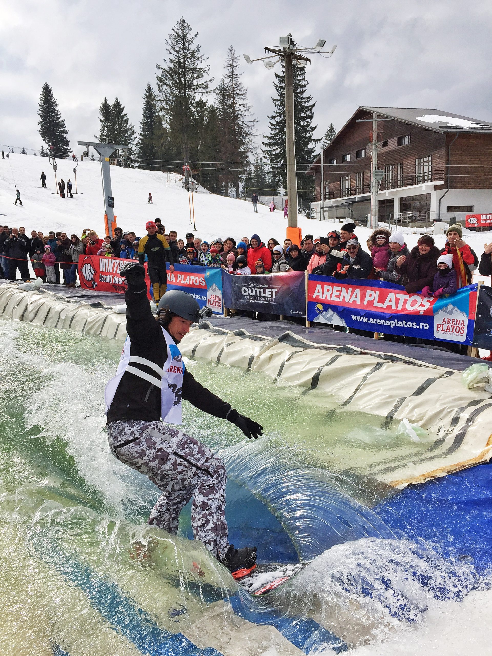 În ciuda frigului, a ceții și a pojghiței de gheață de la suprafața lacului construit la baza pârtiei principale a complexului Arena Platoș, peste 30 de concurenți au luat startul în cel mai spectaculos concurs al sezonului, Slide and Freeze.