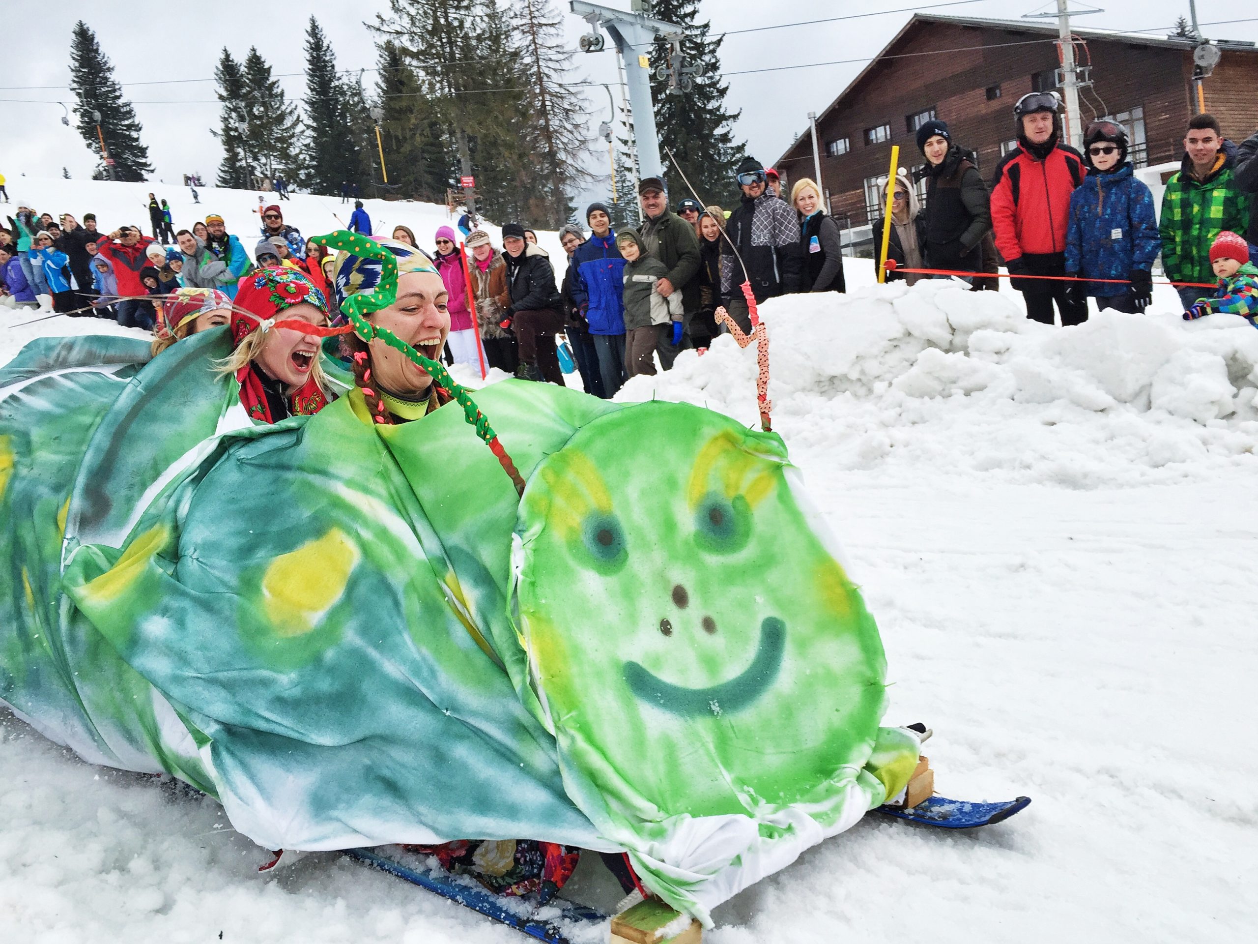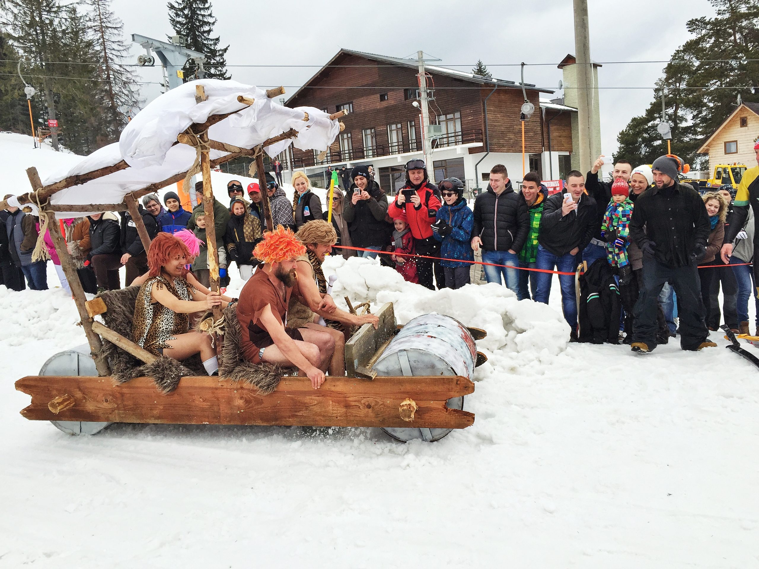 Distracția adevărată a început însă la ultima probă a concursului, cea de ambarcațiuni. Un pat cu perne și plapumă, un caiac cu velă, mai multe mașini, o cadă de copilași, un tren din care au țâșnit la final dolari, asta au văzut sutele de spectatori veniți astăzi la Arena Platoș. Mama Omidă a câștigat categoria cel mai bun grup de fete. Trei fete îmbrăcate în pirande, cu coloana sonoră aferentă și acoperite de o omidă gigant au smuls ropote de aplauze publicului și note mari din partea juriului. Însă cea mai spectaculoasă construcție din acest sezon a fost celebra mașină care îi purta de colo-colo pe Fred și Barney în The Flinstones. Iar cei patru echipieri au condus mașina costumați în oamenii epocii de piatră, cu fuste scurte, peruci fistichii și fără nicio teamă de apa înghețată.